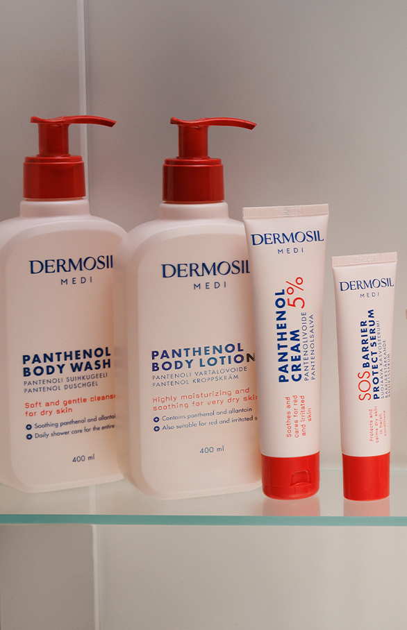 Tutustu myös muihin Pantenoli-tuotteisiin: Pantenoli huulivoide on ihanteellinen voide kuiville ja halkeileville huulille ja Pantenolivoide 5 % on tehokas täsmätuote ihon kuiviin ja punoittaviin ongelmakohtiin.