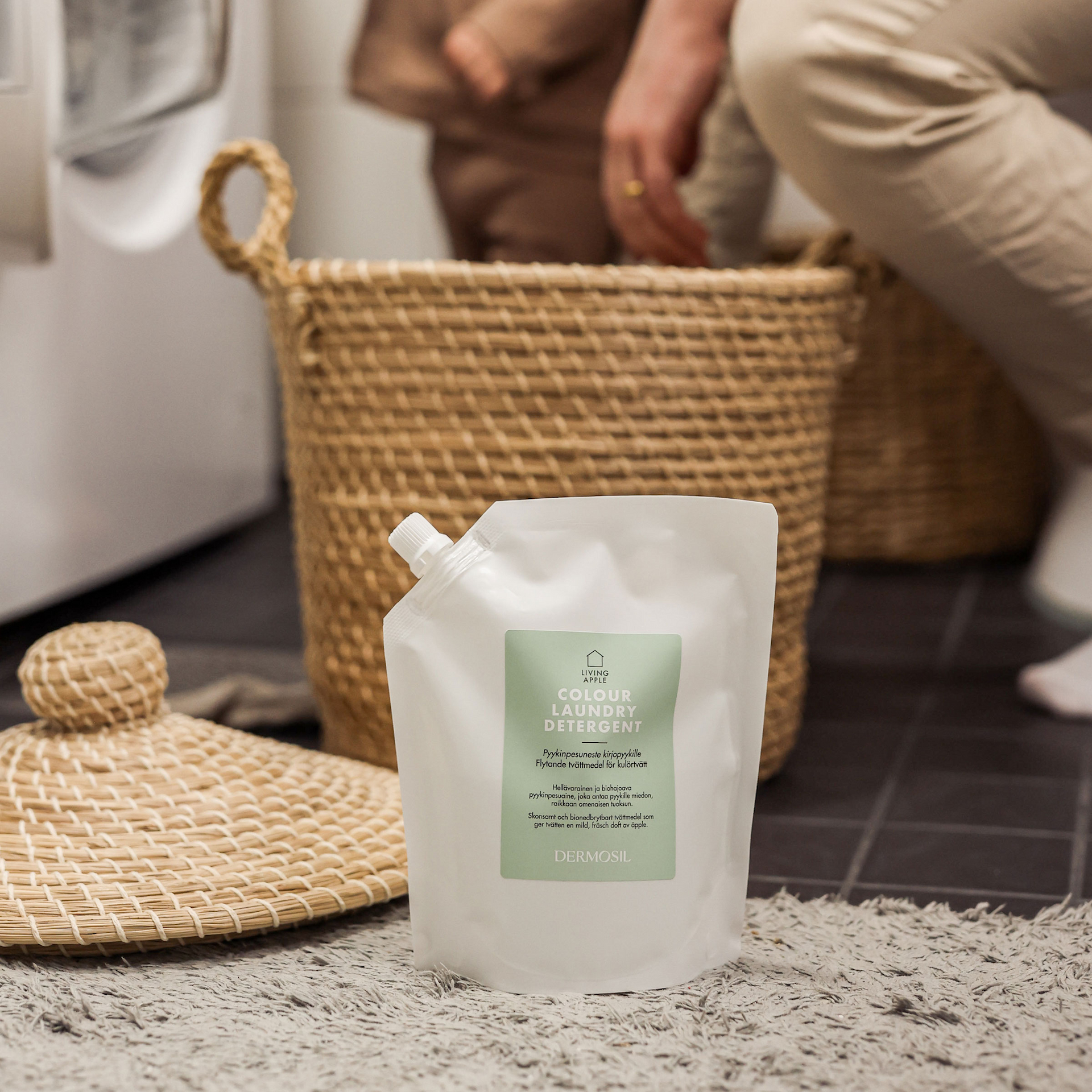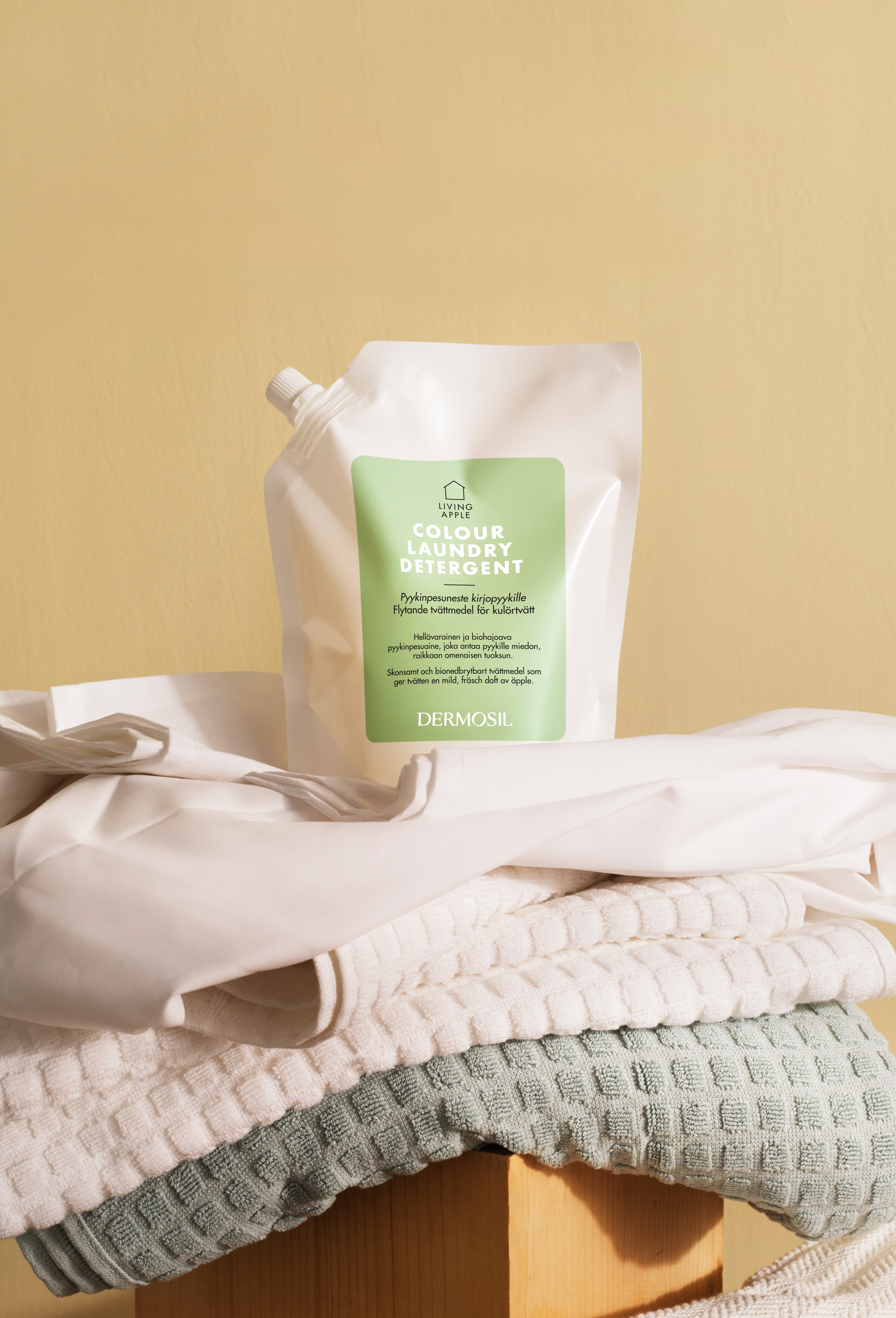 Apple Pyykinpesuneste kirjopyykille sopii sekä pyykkien käsinpesuun että koneelliseen pyykinpesuun. Nestemäinen pyykinpesuaine soveltuu myös siivoustekstiilien pesuun sekä urheilutekstiileille. Kaikelle kirjopyykille ja hienopyykille tarkoitettu pyykinpesuaine on zeoliititon, eikä se sisällä väriaineita tai kirkasteita.