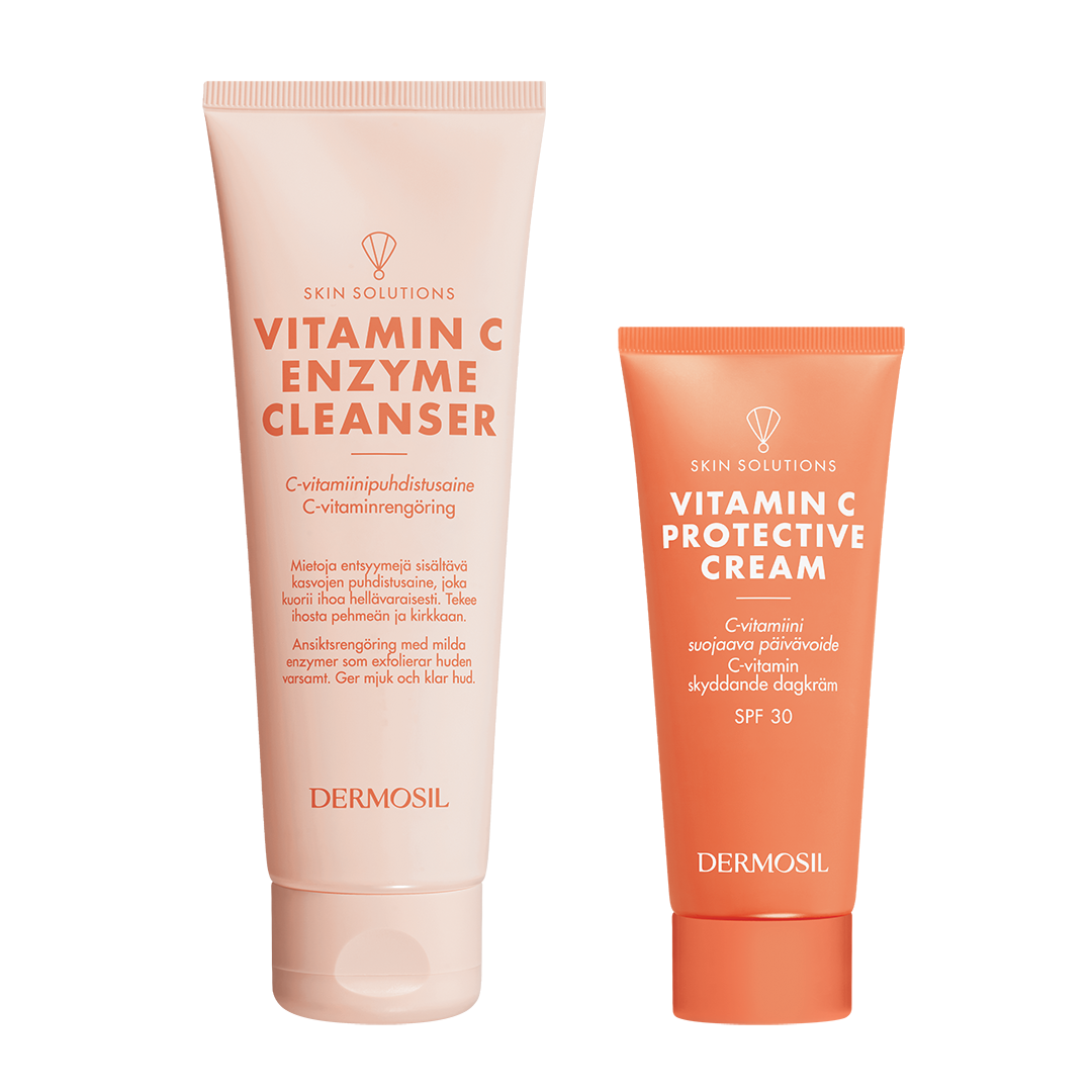 Ihon ikääntyminen alkaa usein näkymään salakavalasti sameutena ja värimuutoksina jopa ennen varsinaisten juonteiden ja ryppyjen ilmestymistä. Tällöin C-vitamiini iholle on oikea superainesosa ihonhoidossa, sillä se auttaa kirkastamaan ja korjaamaan ihoa – heleämpi iho tuntuu heti nuorekkaammalta. C-vitamiini iholle on tehokas antioksidantti, joka ehkäisee ja torjuu vapaiden radikaalien aiheuttamia ihovaurioita, lisäten siten ihon hyvinvointia ja elinvoimaa. C-vitamiini kasvoille lievittää auringon aiheuttamia ihovaurioita sekä auttaa hallitsemaan ja vähentämään pigmentaatioita, joita sekä UV-säteily että ikääntyminen voivat aiheuttaa. Lisäksi se tukee ihon omaa kollageenintuotantoa.