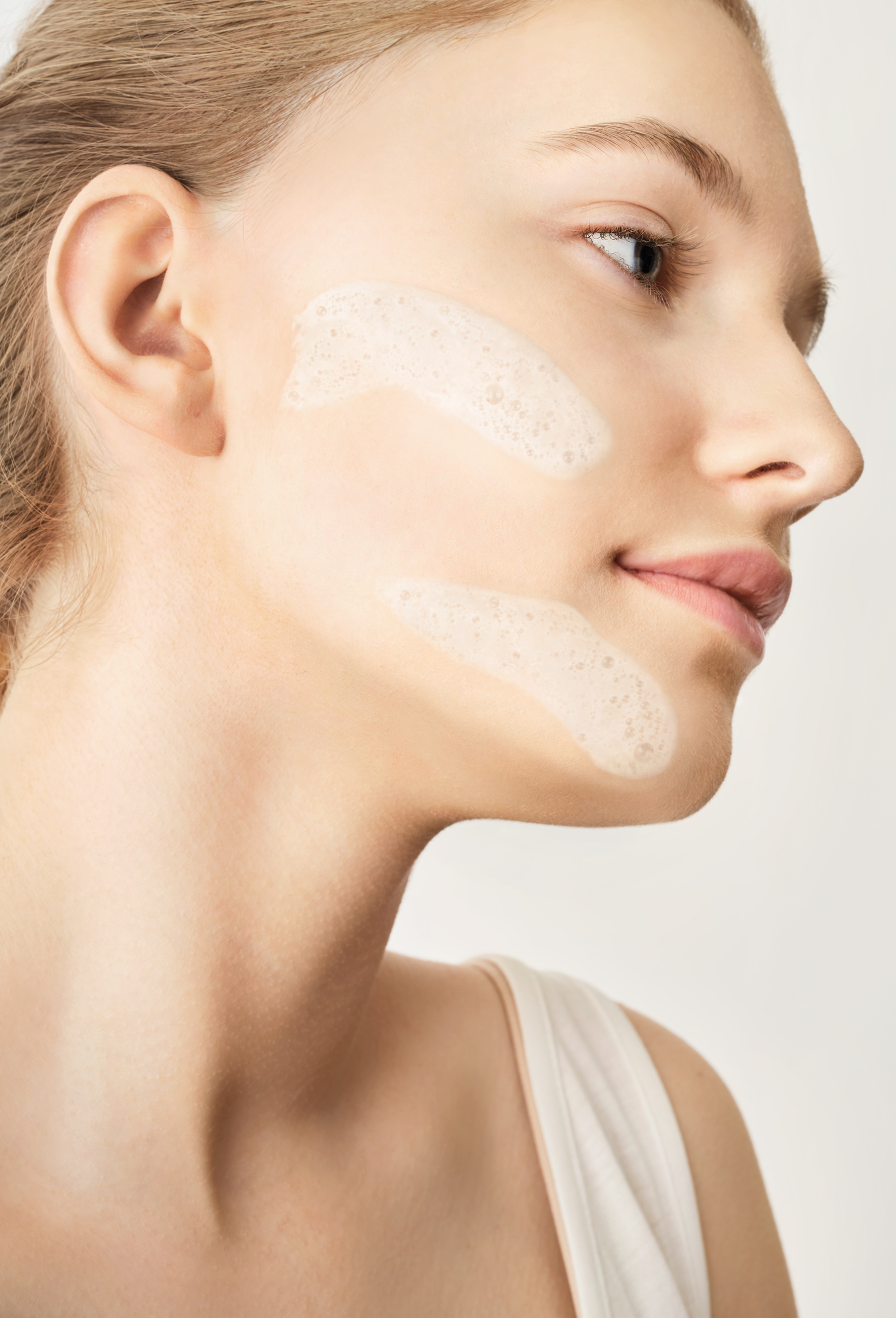 Kasvojen puhdistus hellävaraisella puhdistusvaahdolla