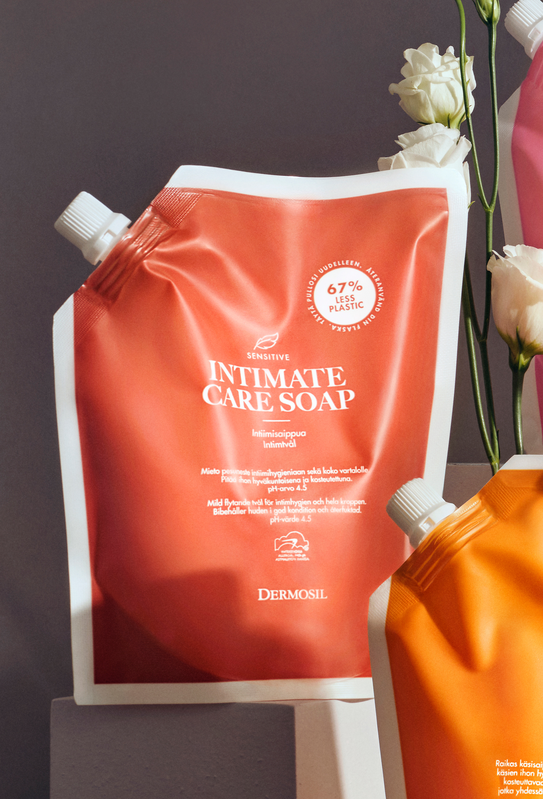 Intiimisaippua on täysin väriaineeton ja hajustamaton. Intiimipesuainetta voidaan käyttää myös koko vartalon pesuun. Silloin on hyvä muistaa, että sen pesuominaisuudet eivät vastaa tavallisen saippuan tehoa. Jos iho on hyvin kuiva, voi peseytymiseen käyttää vuoropäivin esimerkiksi Classic-sarjan Voidesaippuaa ja Intiimisaippuaa.