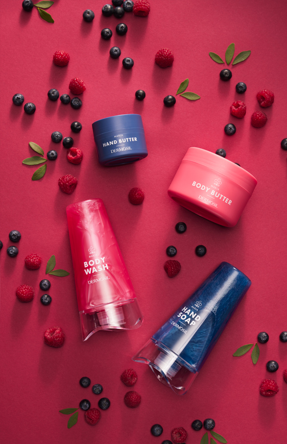 Marja-sarjan uutuus, herkullinen mustikkakäsisaippua, on valmistettu omalla tehtaallamme Korsnäsissä ja pakattu kauniiseen pyramidipulloon. Tuote on sävyltään kauniin sinistä ja piristää ihanasti kylpyhuonettasi!