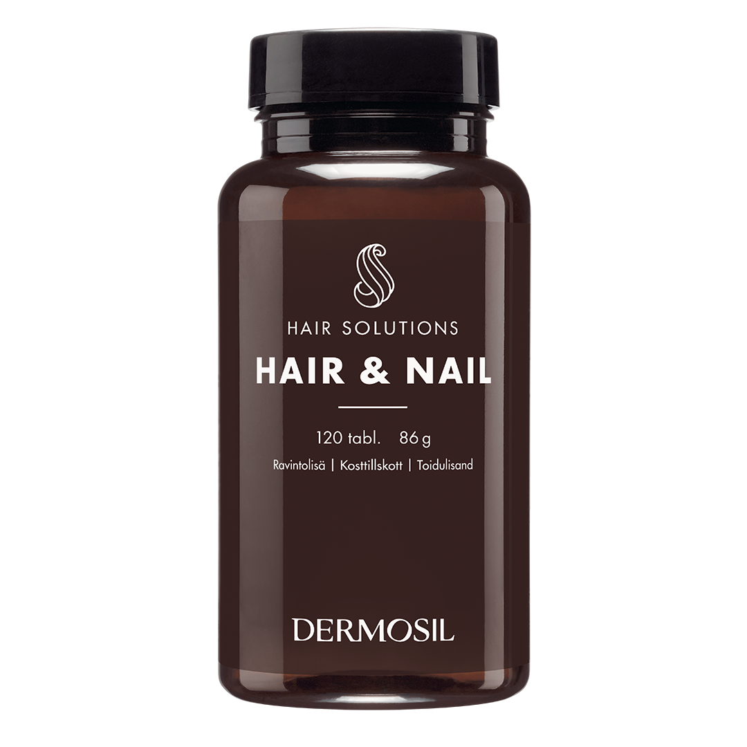 Dermosil Hiukset ja kynnet on kehitetty vahvistamaan lohkeilevia kynsiä ja hauraita hiuksia. Stressi, liika aurinko ja liiallinen käsittely haurastuttavat hiuksia. Kynnet taas voivat kärsiä niin kuivuudesta, kylmästä kuin ravinteiden puutteestakin.