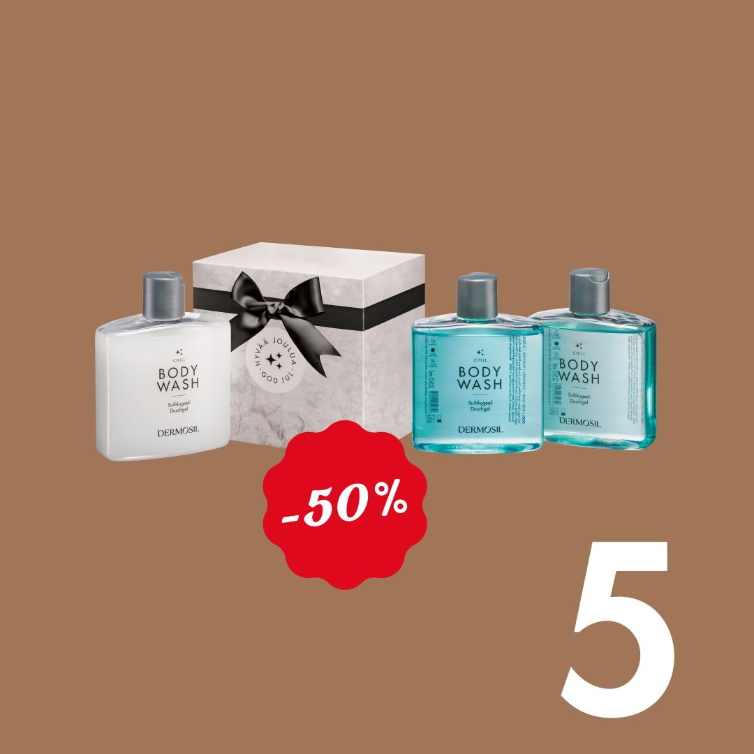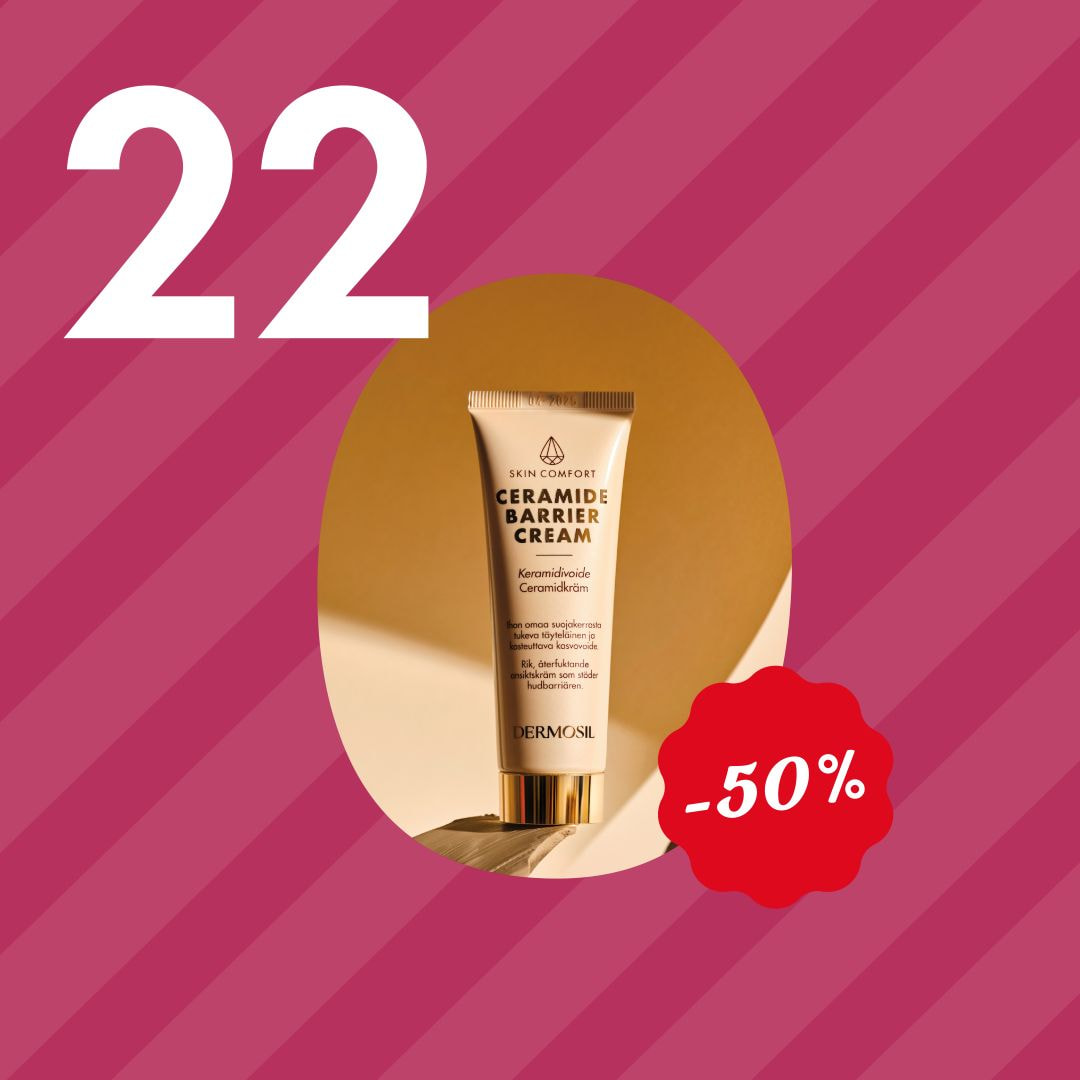 *Tarjoukset ovat voimassa DermoKlubin jäsenille ja niille, jotka liittyvät jäseniksi. Päiväkohtainen tarjous aktivoituu, kun kirjaudut asiakastilillesi. Tarjoukset ovat voimassa ilmoitettuna päivänä joulukuussa 2025 tai niin kauan kuin tuotteita riittää. Tarjoukset ovat voimassa verkkokaupassa osoitteessa dermosil.fi sekä Dermosil Live -studioilla Vaasassa ja Turussa. Tarjoukset eivät koske jo alennettuja hintoja tai settihintoja. Pidätämme oikeuden painovirheisiin, hinnanmuutoksiin ja loppuneisiin tuotteisiin. Tarjouksia ei voi yhdistää muihin tarjouksiin.