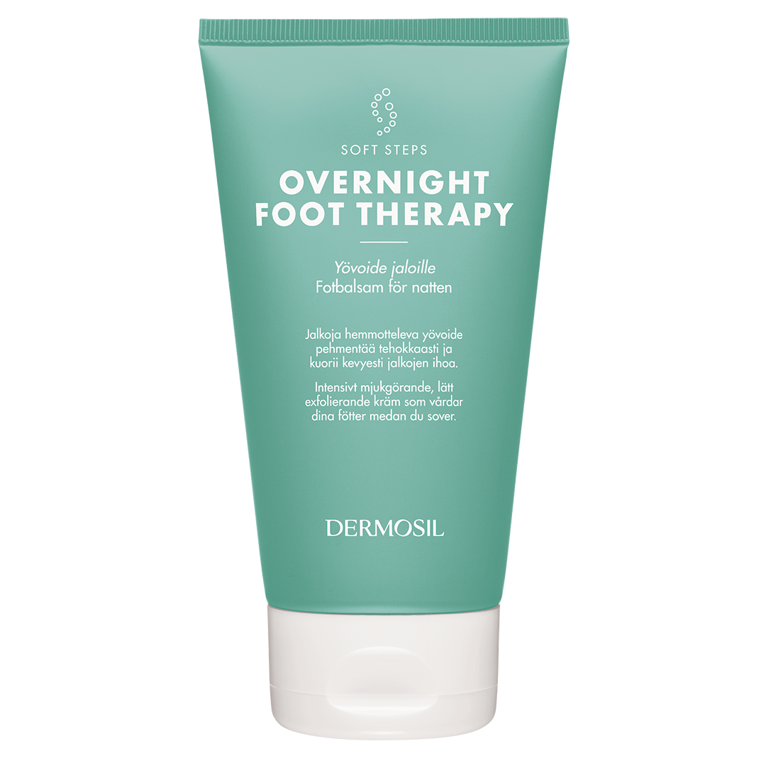 Dermosilin Yövoide jaloille tarjoaa intensiivistä hoitoa yön yli. Täyteläinen voide sopii erityisesti jaloille, jotka kaipaavat syväkosteutusta ja rauhoitusta pitkän päivän jälkeen. Hoitavat ainesosat ravitsevat ihoa ja auttavat palauttamaan sen pehmeyden, jolloin voit herätä aamulla sileämpien jalkojen kanssa. Voiteen kemiallisesti kuorivat PHA- ja AHA-hapot auttavat ehkäisemään kovettumien muodostumista jalkojen iholle – todella kätevä tapa kovettumien hoitoon jaloissa. Voide sopii erityisesti kylmiin talvikuukausiin ja viilentävän tunteen ansiosta myös kuumottaviin kesäiltoihin.