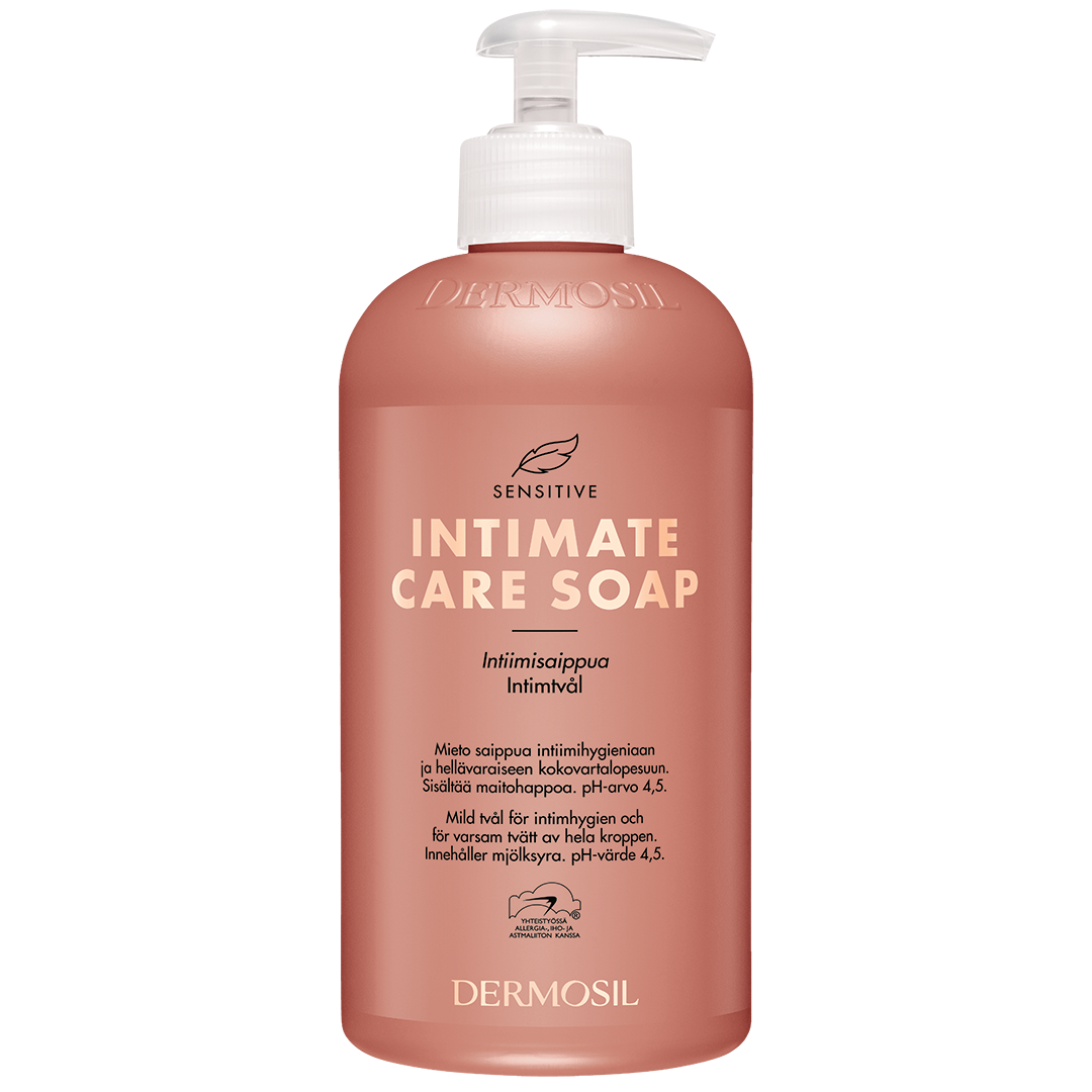 - Varmista, että intiimituotteen pH-arvo on tarkoitettu nimenomaan intiimialueelle. Sopiva intiimialueen pesuaine tukee intiimialueen normaalia happamuutta. Siten intiimipesuneste edistää hyvinvointia säilyttäen intiimialueen luontaisen bakteerikannan.