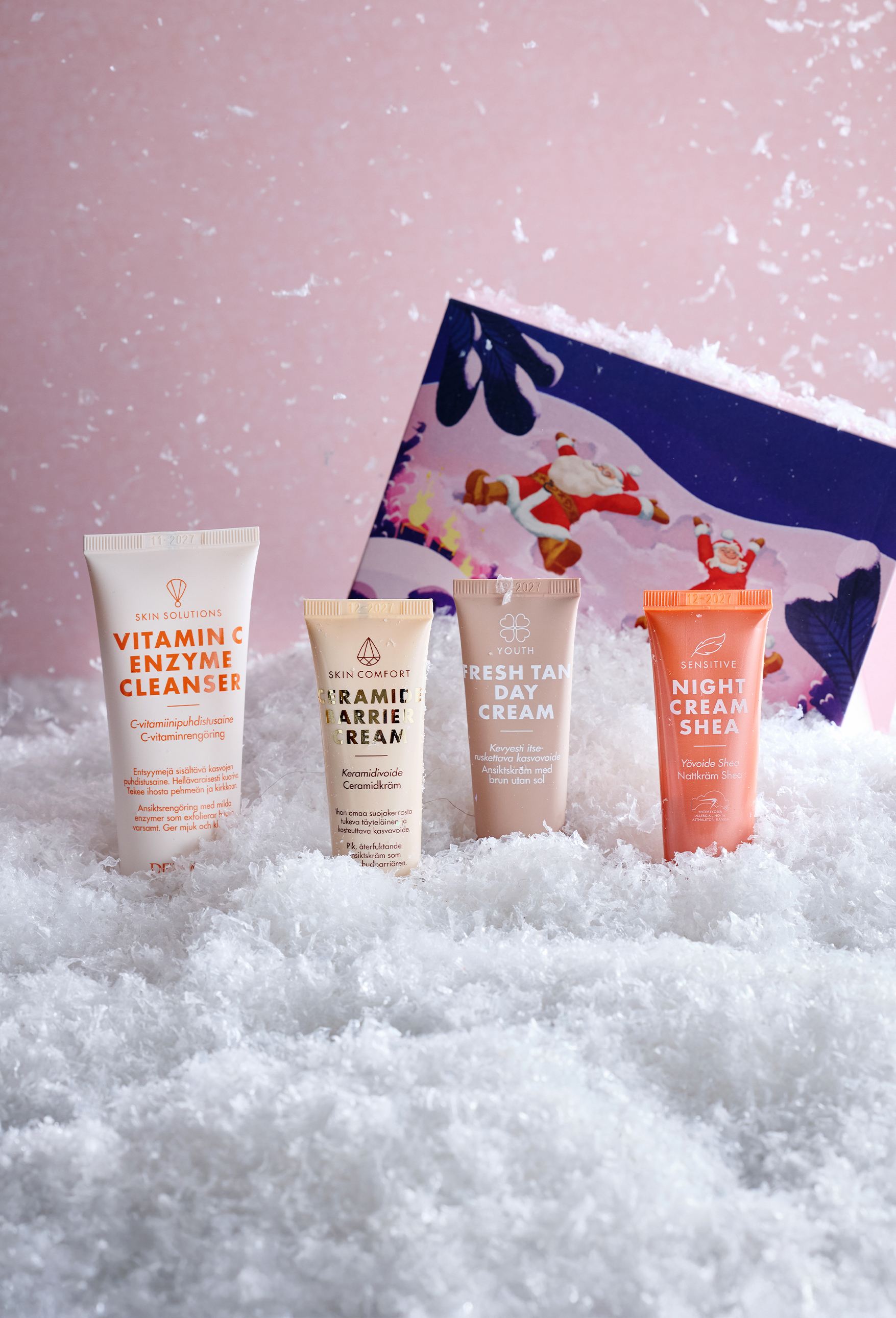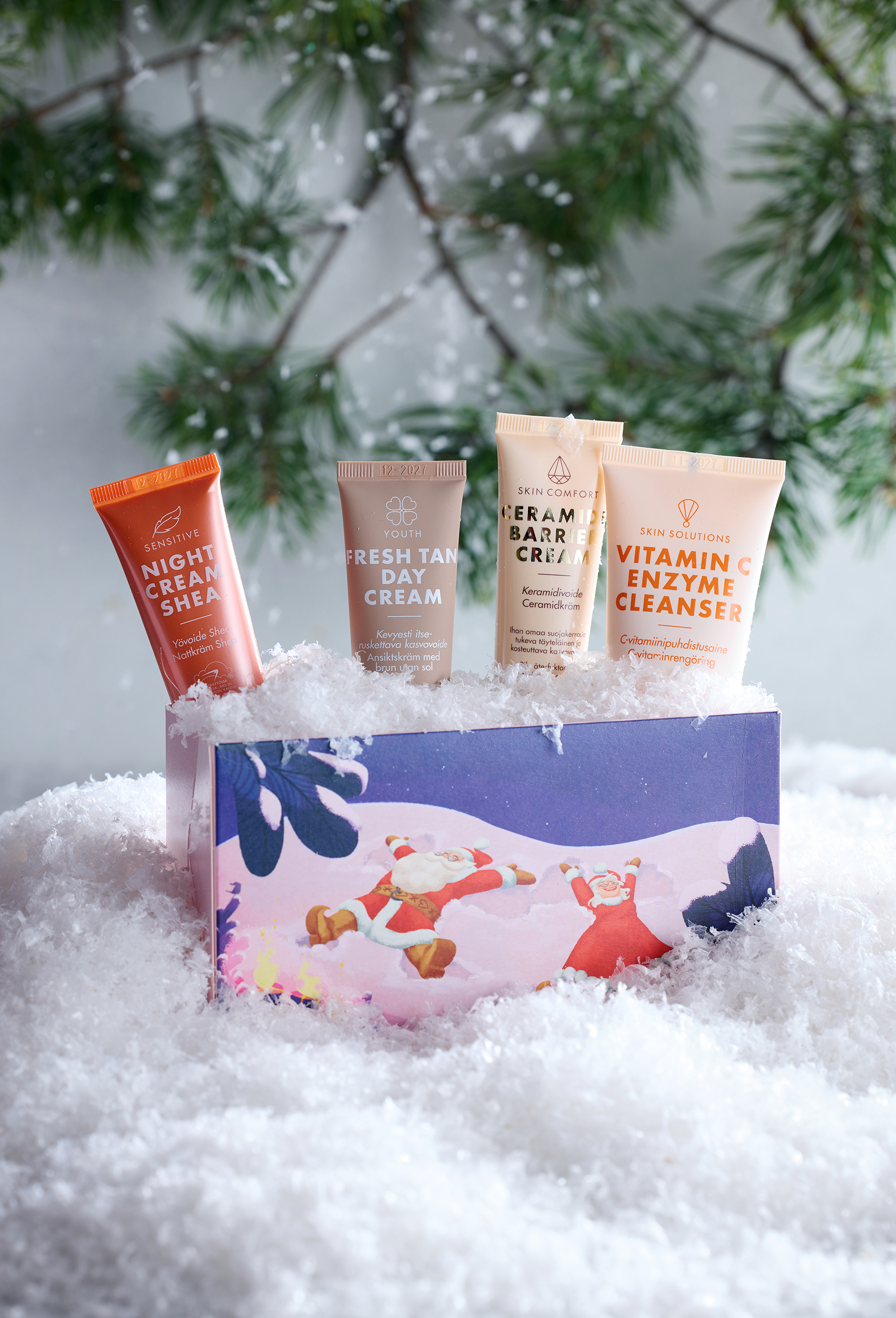 Kosmetiikkalahjapakkauksen tuotteet on dermatologisesti testattu eli niitä on testattu ihmisillä ihotautilääkärin valvonnassa.