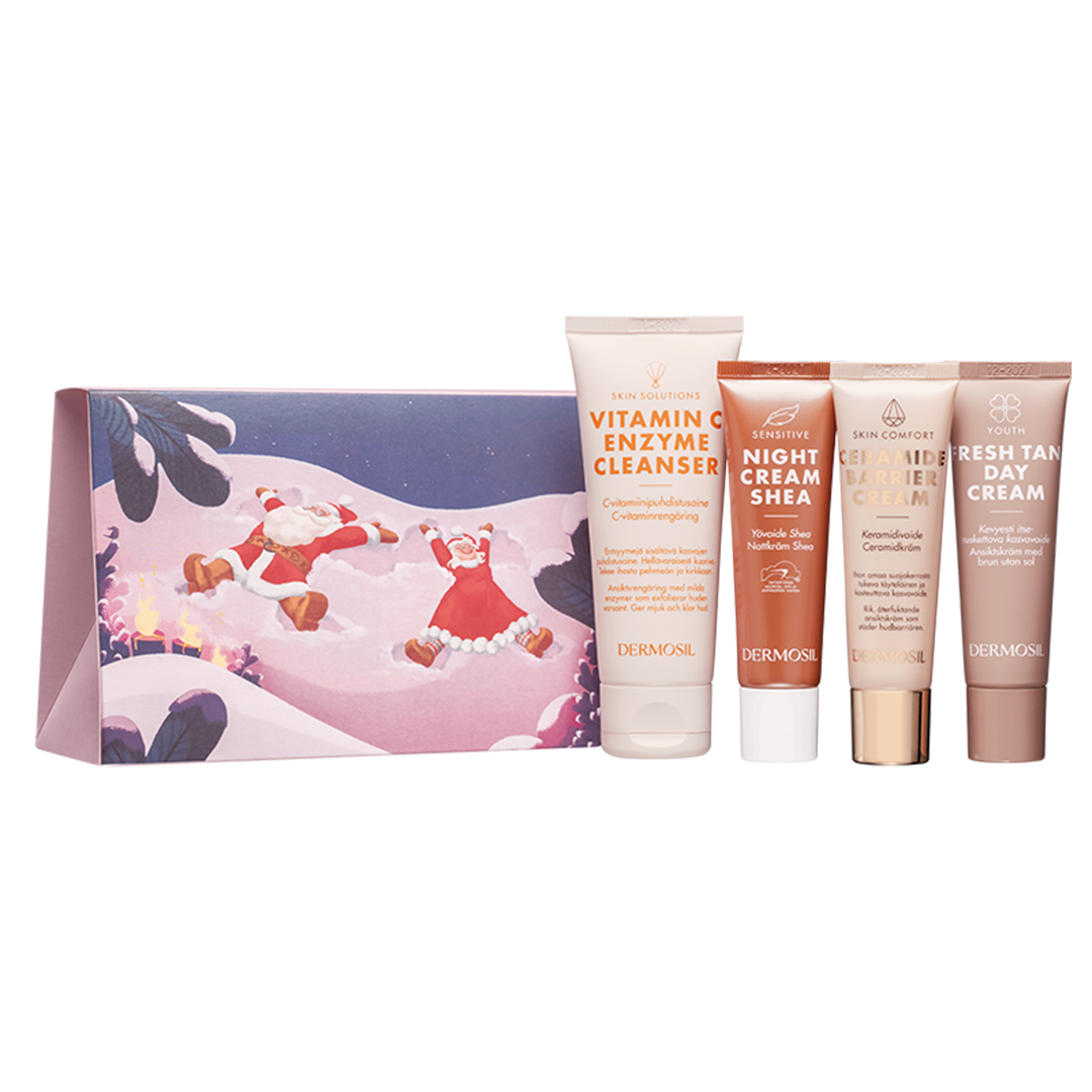 Joulupakkaus Happy sisältää neljä valikoimamme rakastettua kasvojenhoitotuotetta pienemmässä koossa. Nämä lahjapakkauksen tuotteet tekevät kasvojen ihosta onnellisen!