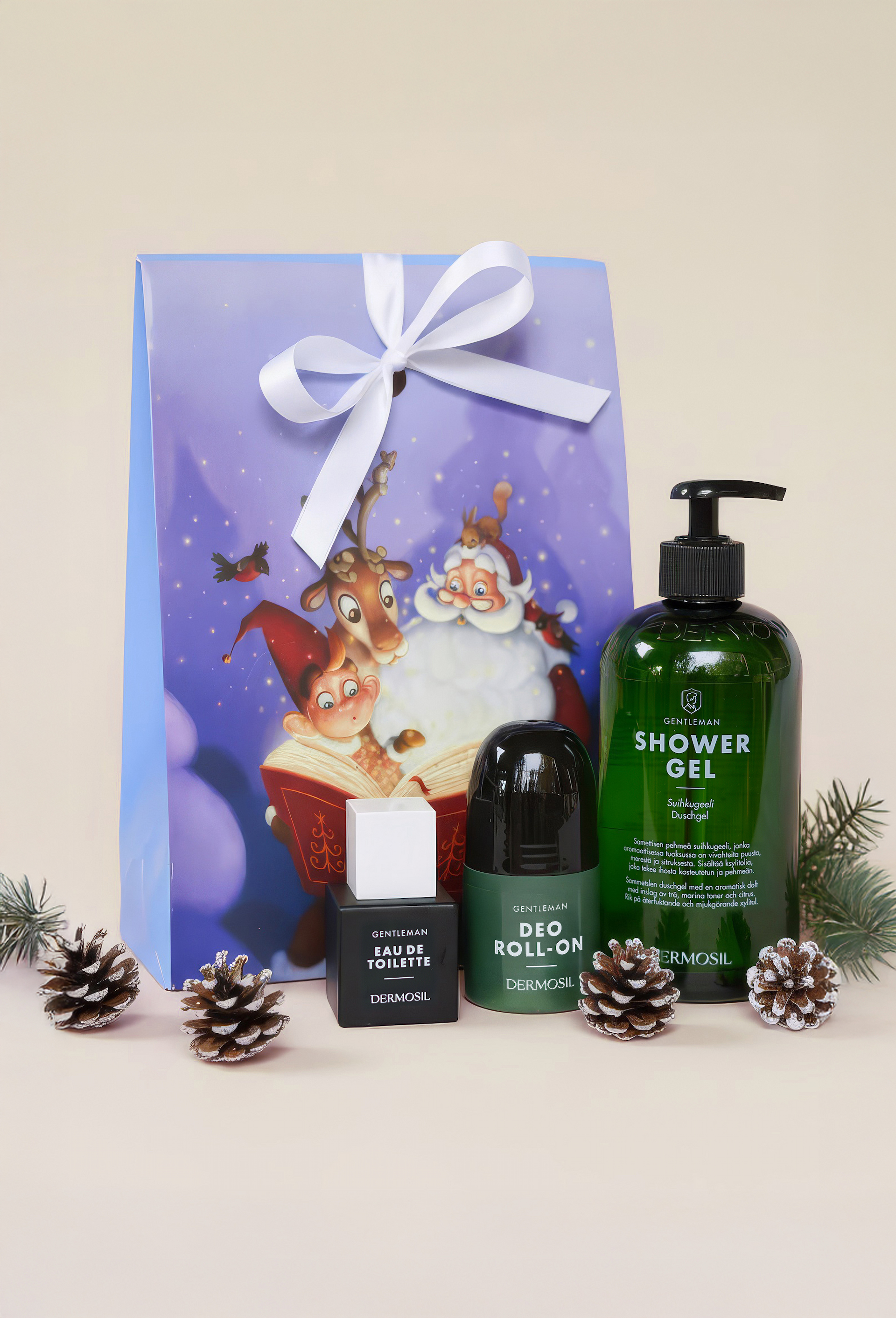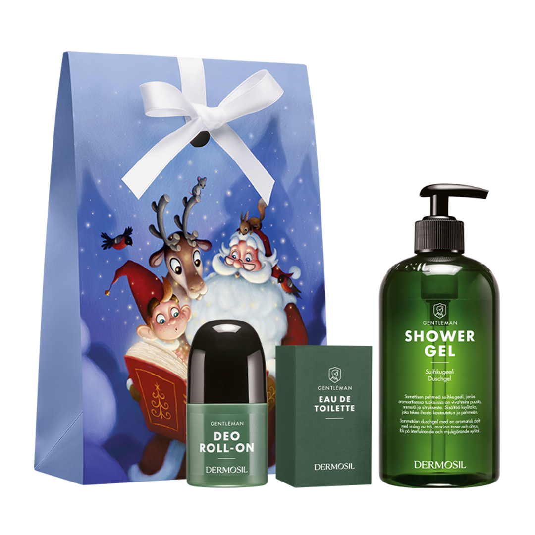 Lahjapakkaus Gentleman on täydellinen miesten lahjapakkaus. Gentleman suihkugeelissä, deodeorantissa ja Eau de Toiletessa on upea aromaattinen tuoksu, jossa metsä ja meri kohtaavat.