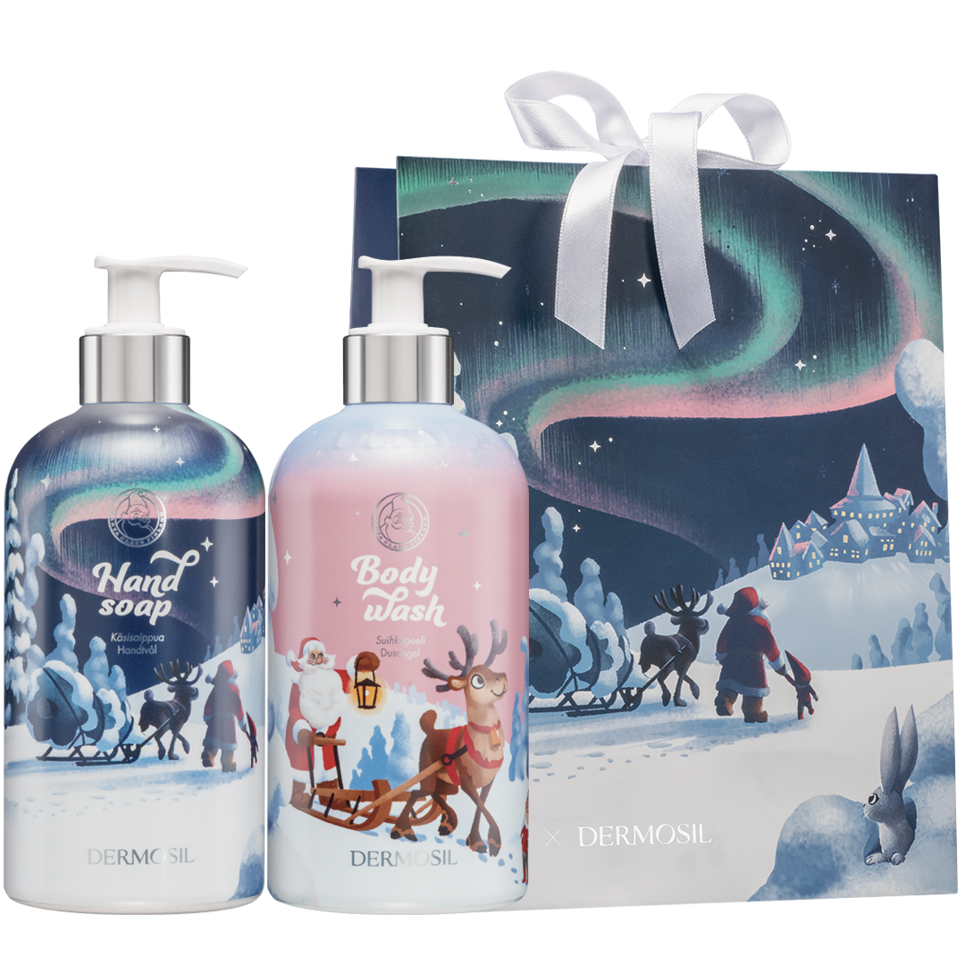 Joulupukin saippuasetti sisältää joulupukin viralliset joulusaippuat sekä jouluisen lahjakassin edulliseen settihintaan! Joulupukin Käsisaippua ja Joulupukin suihkugeeli on testattu Korvatunturin vaativissa olosuhteissa ja todettu erityisen kilteiksi iholle!