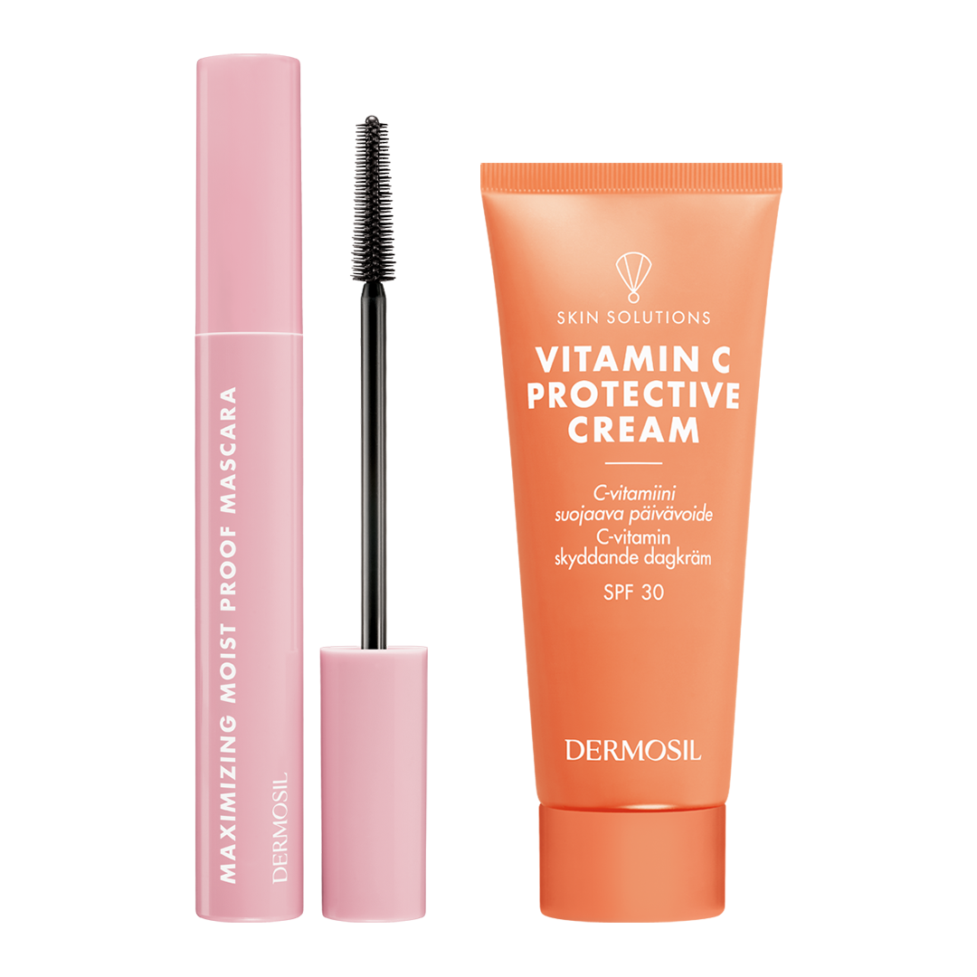 Kesän luottoduo sisältää kaksi tuotetta, jotka eivät jätä sinua pulaan kesän vaihtuvissa olosuhteissa! Rakastetut suosikit, päivävoide suojakertoimella sekä kosteudenkestävä ripsiväri, antavat päiviisi suojaa ja hehkua.