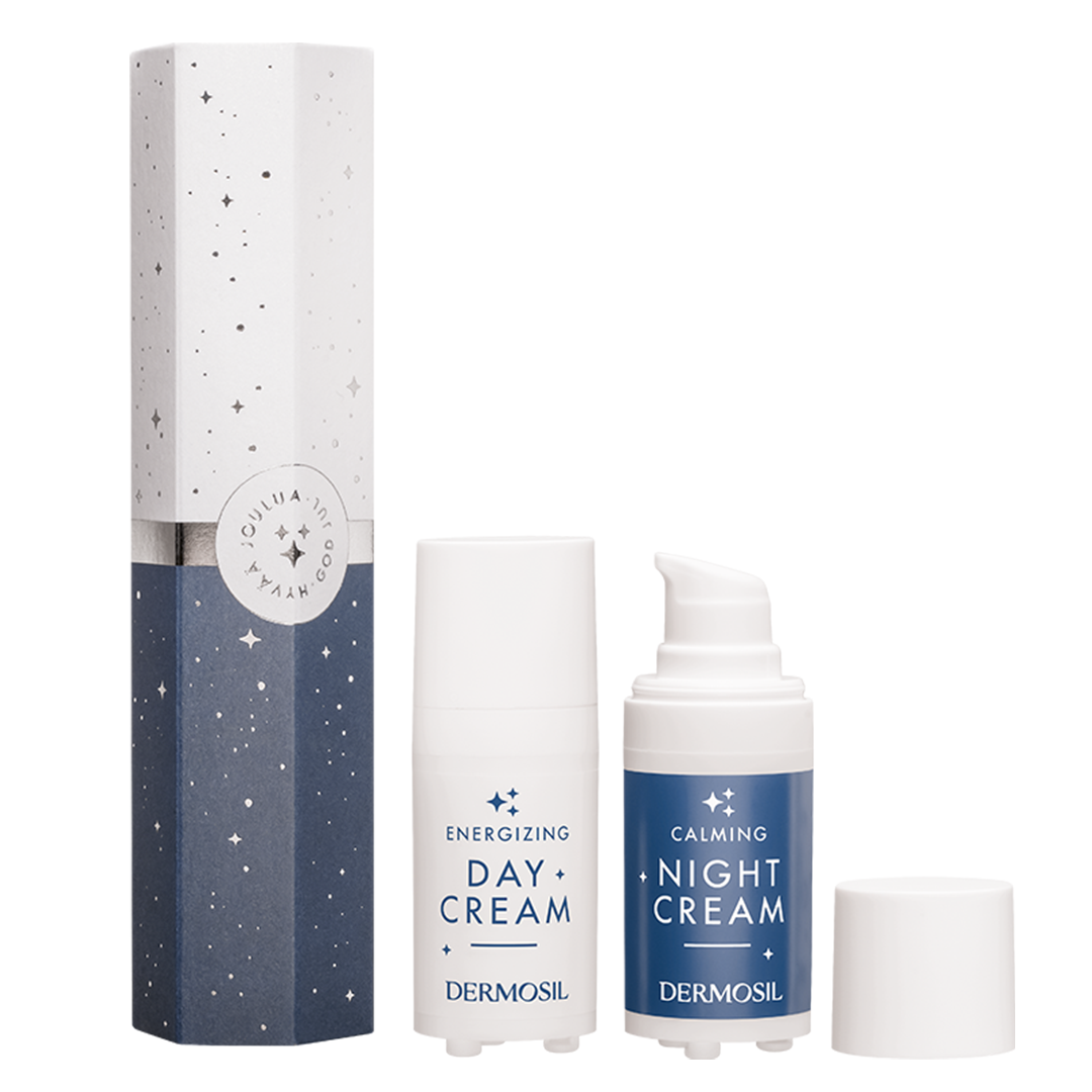 Uniikki lahjapakkaus päivä- ja yövoiteelle pienellä tvistillä — täydellinen lahja ihonhoitorutiiniin ja arjen juhlaan.