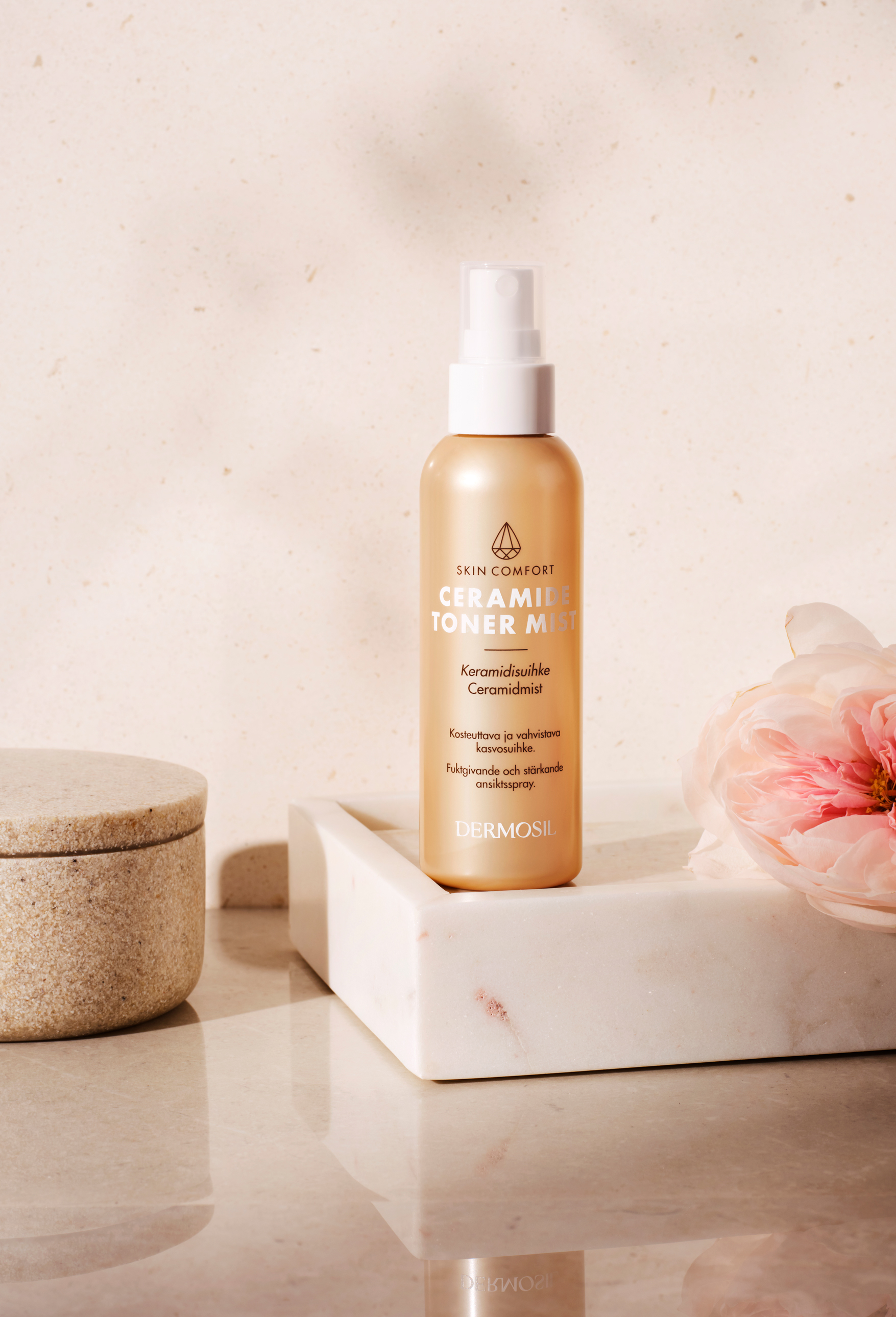 Kosteuttava ja vahvistava kasvosuihke, joka tukee ihon suojakerrosta ja rauhoittaa ihoa.