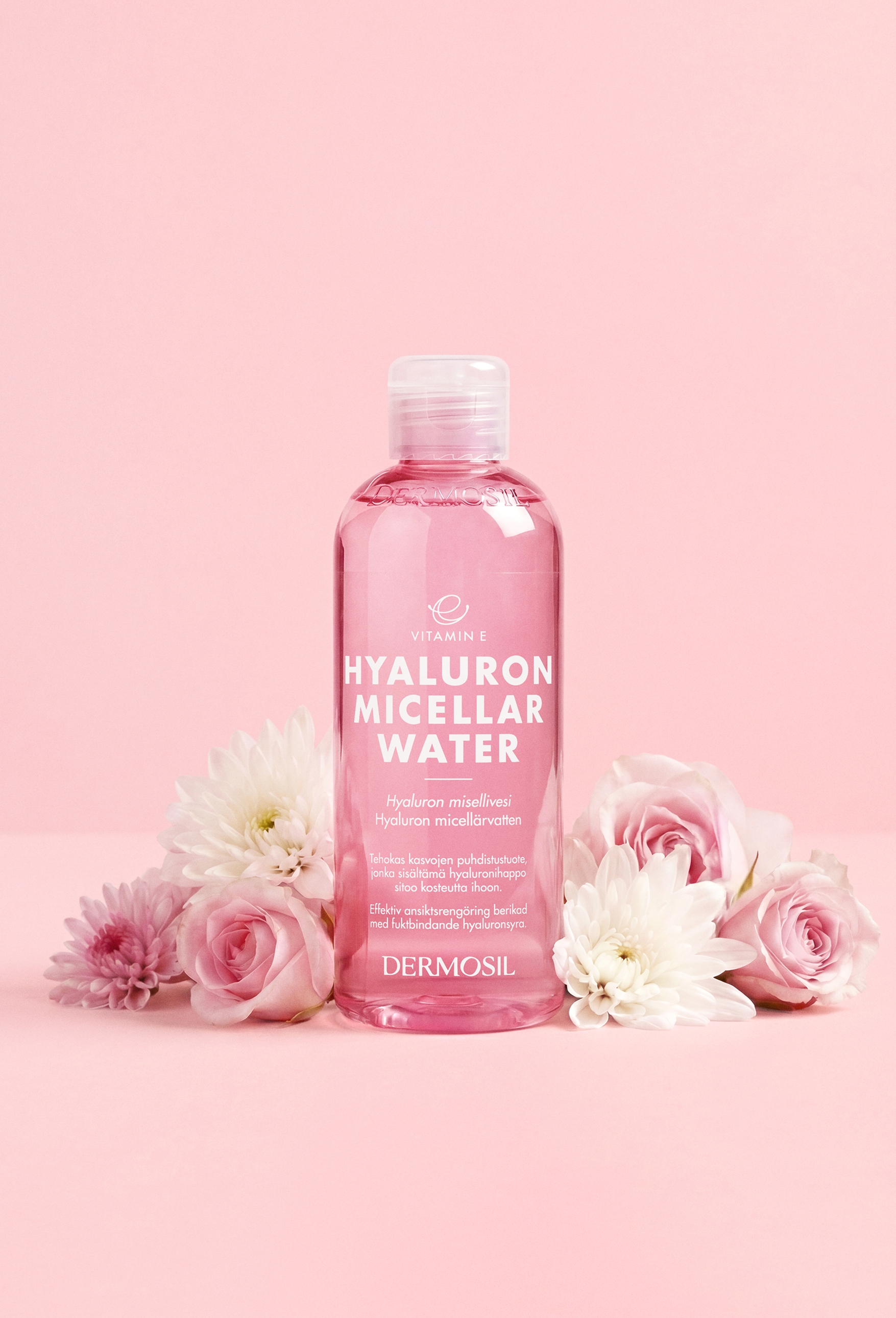 Dermosilin Misellivesi sisältää neljää erikokoista hyaluronihappomolekyyliä, jotka sitovat kosteutta ihoon sekä sisältä että ulkoapäin. Hyaluronihappoja on ihossamme luonnostaan, joten Miselliveden sisältämät ainesosat antavat luonnollista tukea ihon kosteustasapainolle ja parantavat ihon kimmoisuutta. Misellivesi sisältää myös E-vitamiinia, iholle tärkeää antioksidanttia, joka hillitsee vapaiden radikaalien aiheuttamaa hapetusstressiä ja siten ehkäisee ihon ennenaikaista vanhenemista.