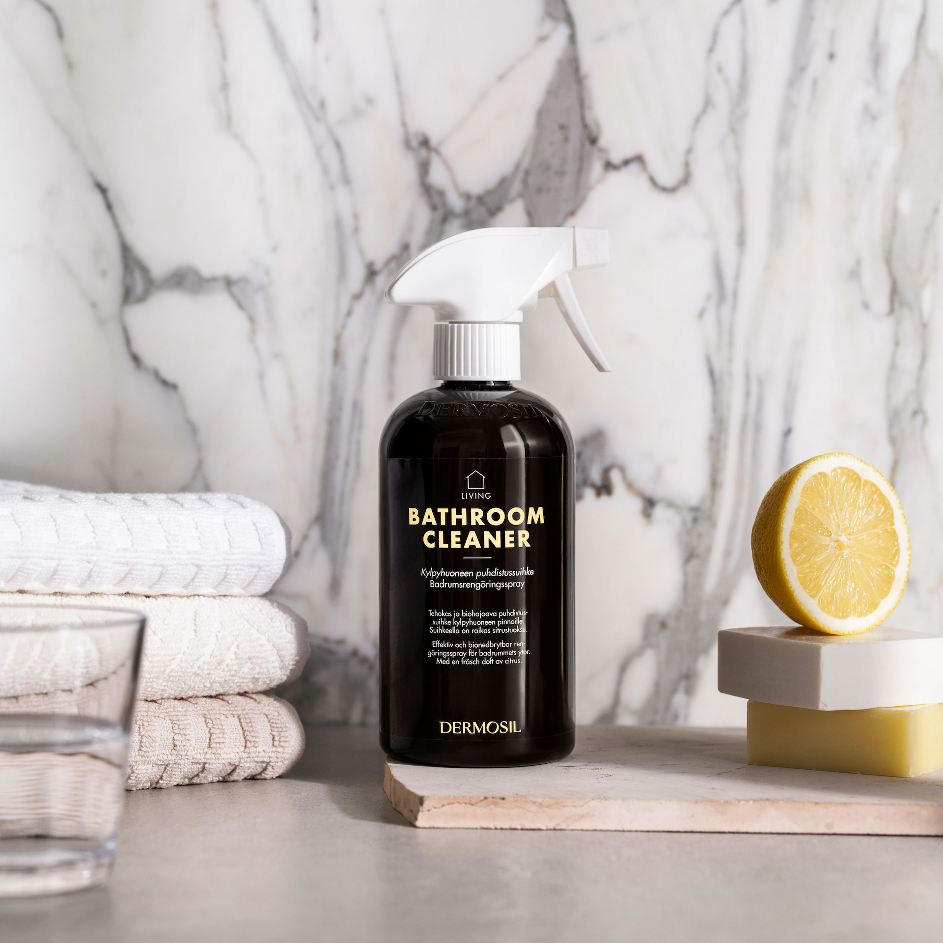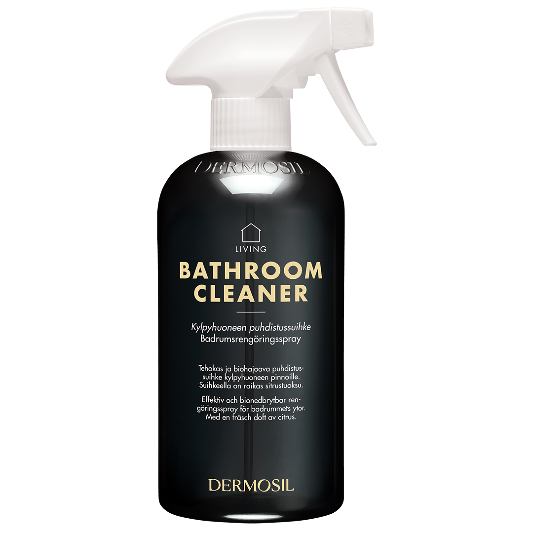 Tehokas puhdistussuihke kylpyhuoneen pinnoille. Käyttövalmis suihke puhdistaa tehokkaasti ja vaivattomasti kalkki- ja saippuatahroja kylpyhuoneen pinnoilta. Biohajoavassa suihkeessa on raikas sitrustuoksu. Olemme uudistaneet suihketta siten, että se jättää jälkeensä aiempaa raikkaamman tuoksun. pH-arvo 2–3.