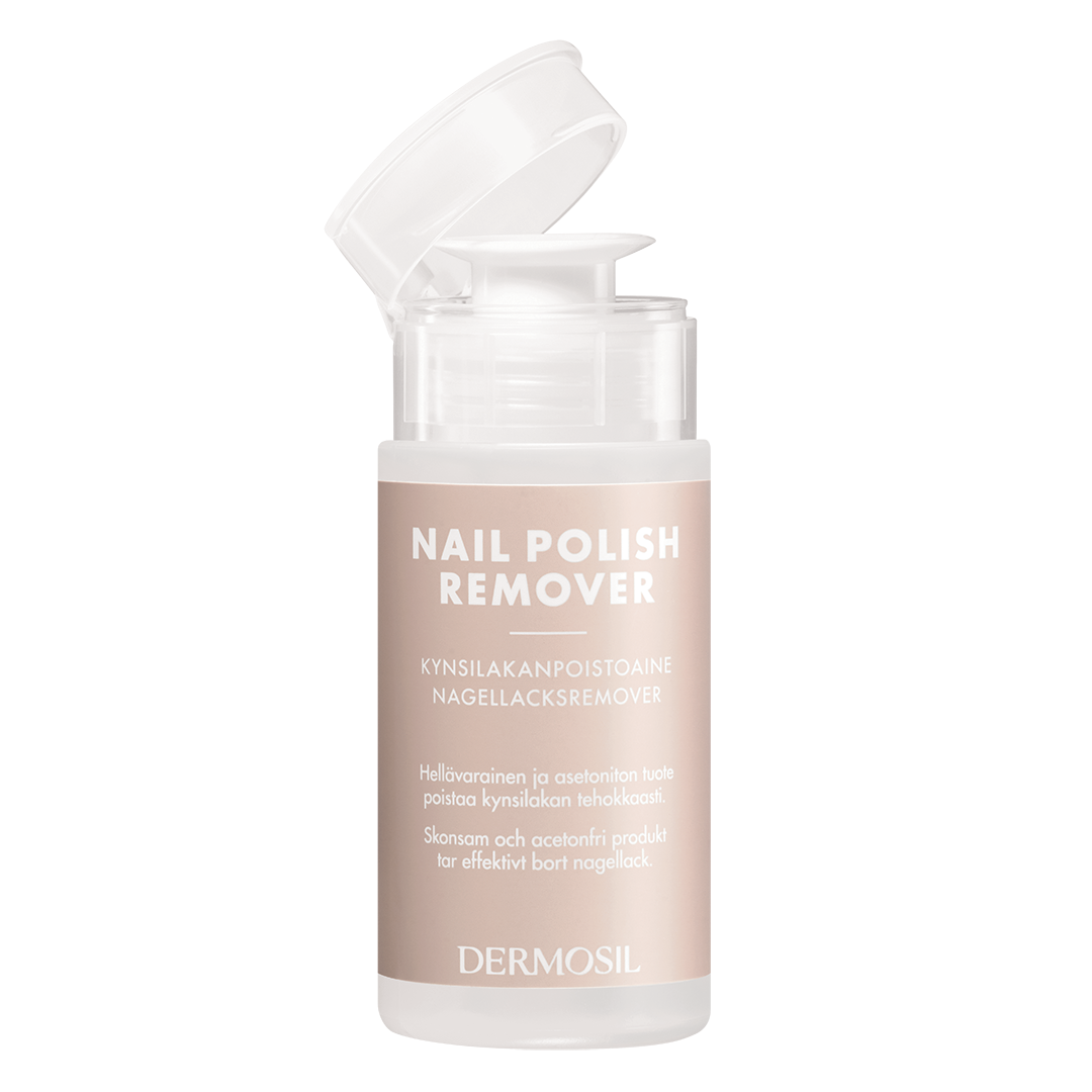 Asetoniton, hellävarainen ja hajustamaton Dermosil on paras kynsilakanpoistoaine, joka poistaa kynsilakan tehokkaasti. Uusi kätevä pumppumekanismi tekee kynsilakan poistosta nopeaa ja vaivatonta.