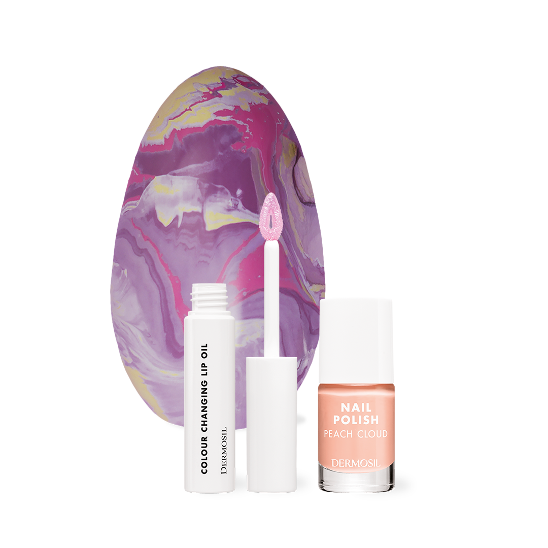 Anna lahjaksi setti, joka tuo väriä ja iloa päiviin! Pääsiäismuna Väriloisto sisältää kauniin persikkaisen Kynsilakka Peach Cloudin ja huuliöljyn, joka muuttaa sävyään huulten pH-arvon mukaan antaen huulille kauniin vaaleanpunaisen sävyn.