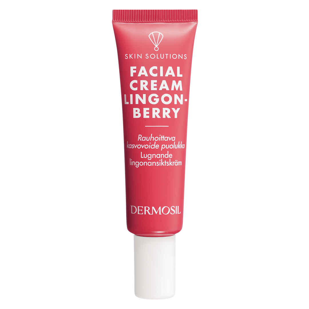 Dermosil Rauhoittava kasvovoide puolukka suojaa, hoitaa ja rauhoittaa ärtynyttä ihoa. Tuotteessa on kevyt, puolukkainen tuoksu.