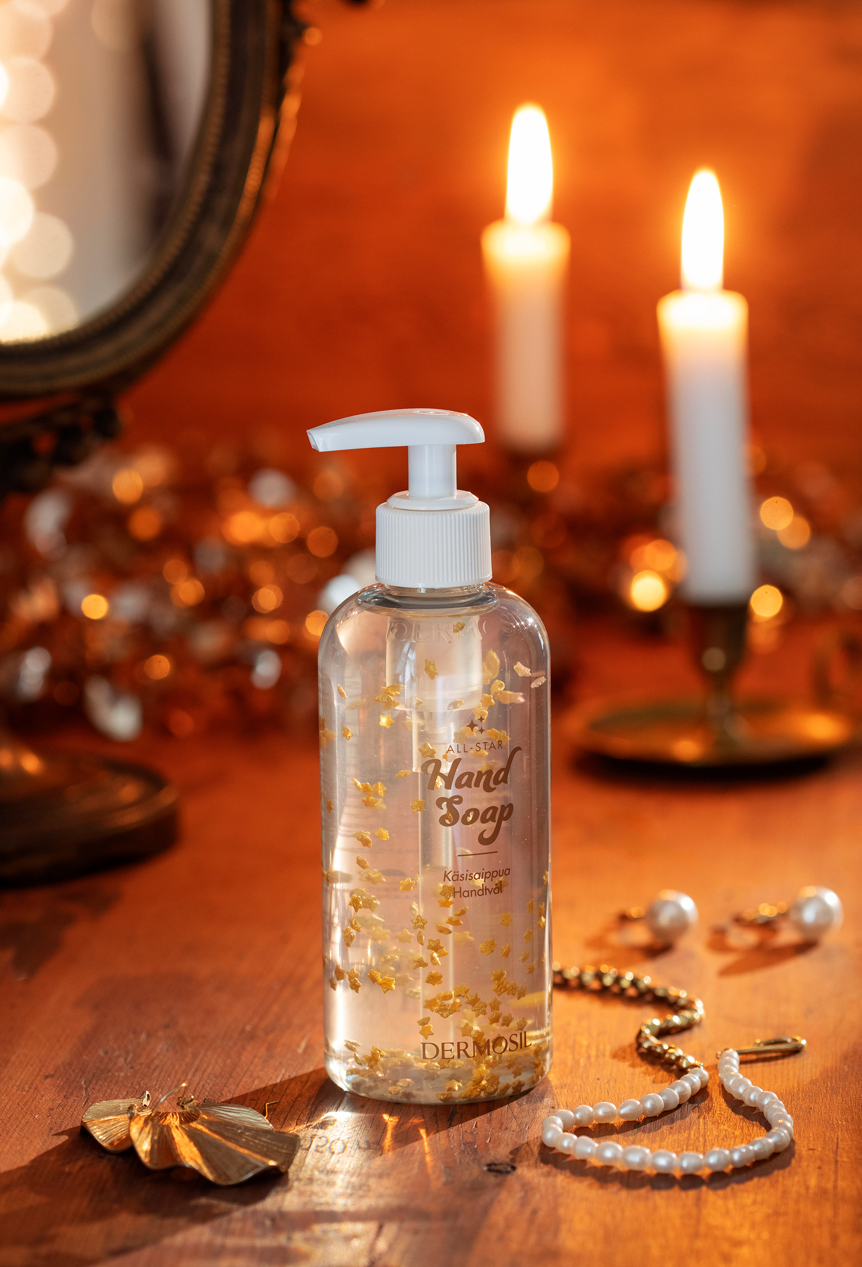 Ylellinen käsisaippua pesee kädet puhtaan pehmeiksi. Saippua sisältää kosteuttavaa glyseriiniä, joten se ei kuivata ihoa, vaan jättää iholle pesun jälkeen miellyttävän tunnun. Kauniit tähtihelmet liukenevat saippuaan, kun sitä hieroo käsiin.