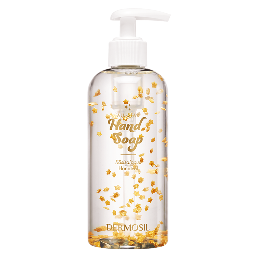 Käsiä hemmotteleva sisältö ja tähtien säihkettä pullollaan oleva ulkonäkö – All-star Käsisaippua tuo kullankimalteisen tähtitaivaan kylpyhuoneeseesi!