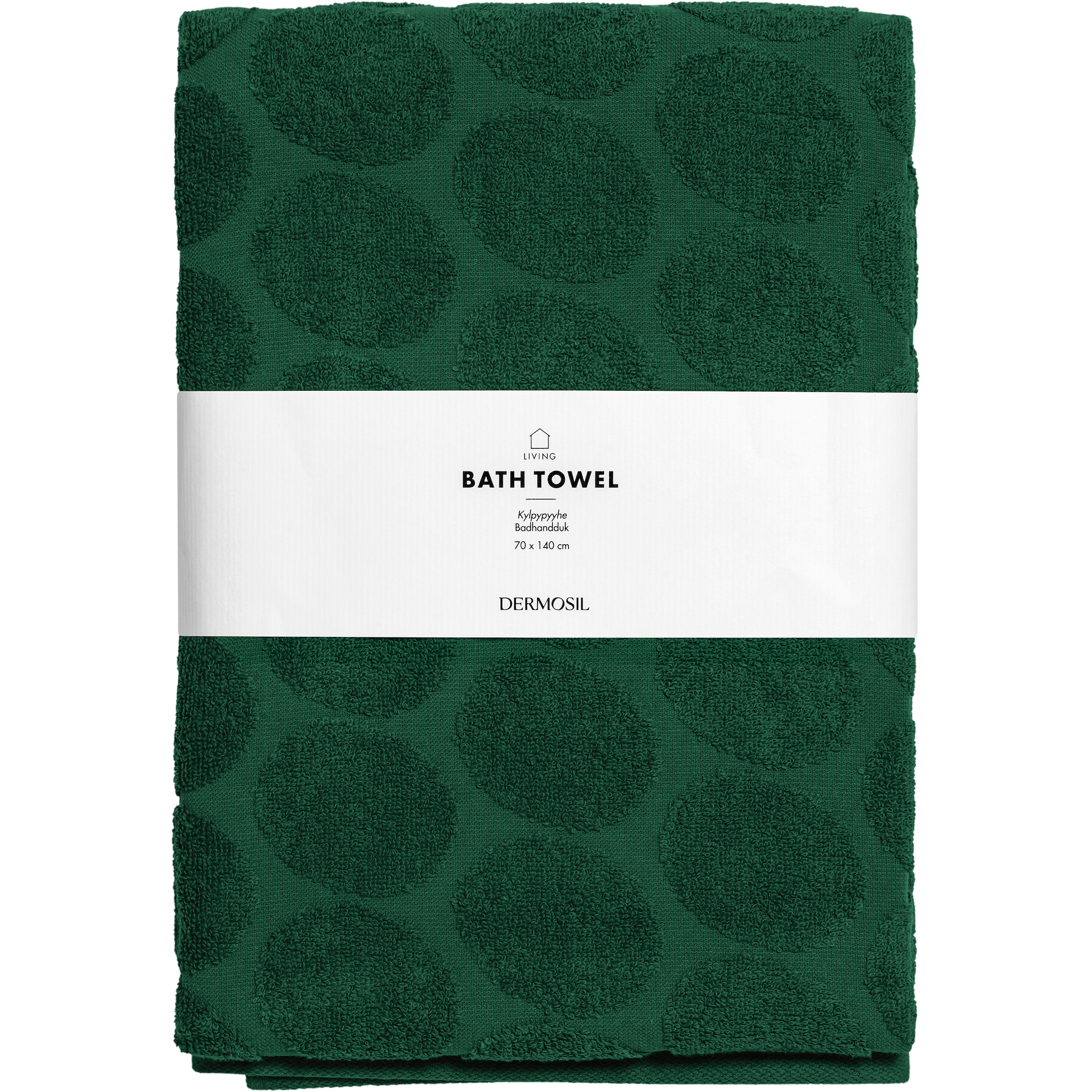 Kaunis, tummanvihreä kylpypyyhe piristää kotisi kylpytiloja. Juuri sopivan kokoinen kylpypyyhe on 100-prosenttista puuvillaa ja tuntuu iholla miellyttävän pehmeältä.