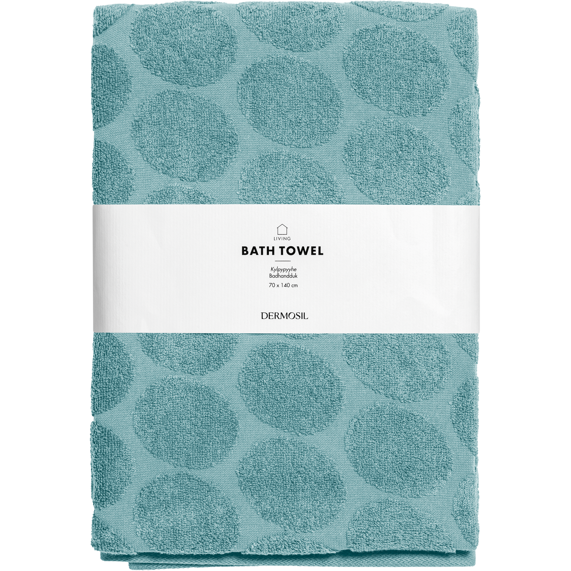 Kaunis kylpypyyhe piristää kotisi kylpytiloja. Pyyhkeen sävy on merellinen aqua. Juuri sopivan kokoinen kylpypyyhe on 100-prosenttista puuvillaa ja tuntuu iholla miellyttävän pehmeältä.