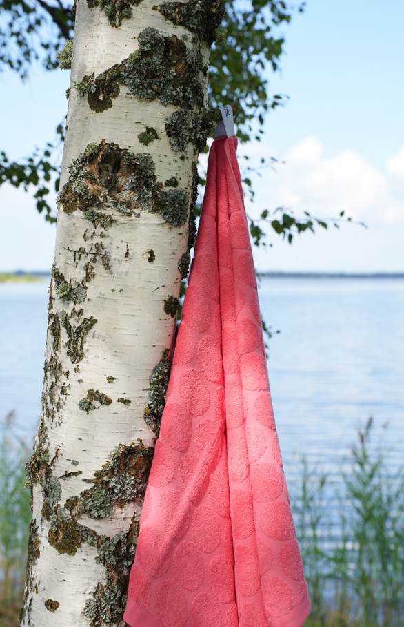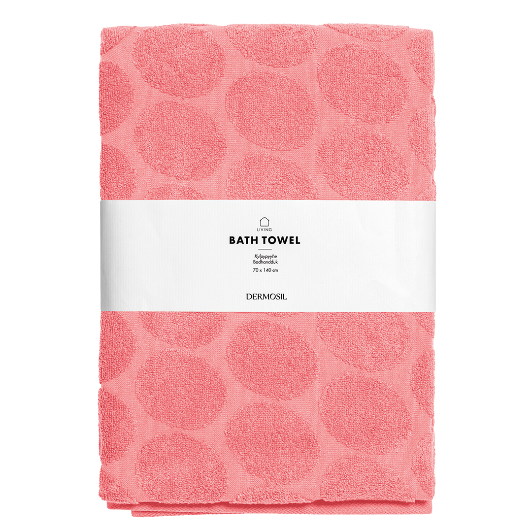 Kaunis kylpypyyhe piristää kotisi kylpytiloja. Pyyhkeen sävy on kauniin korallinpunainen. Juuri sopivan kokoinen kylpypyyhe on 100-prosenttista puuvillaa ja tuntuu iholla miellyttävän pehmeältä.
