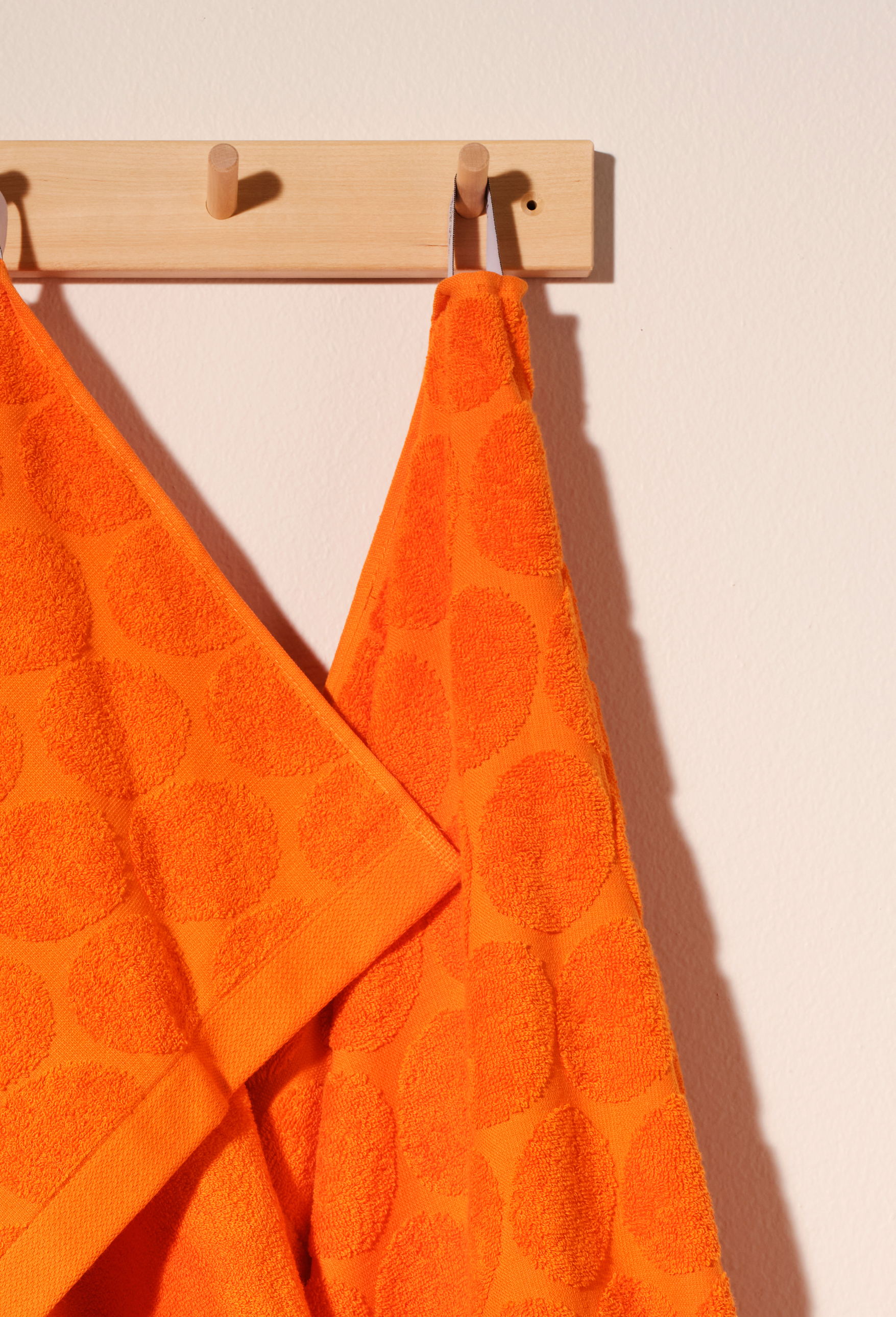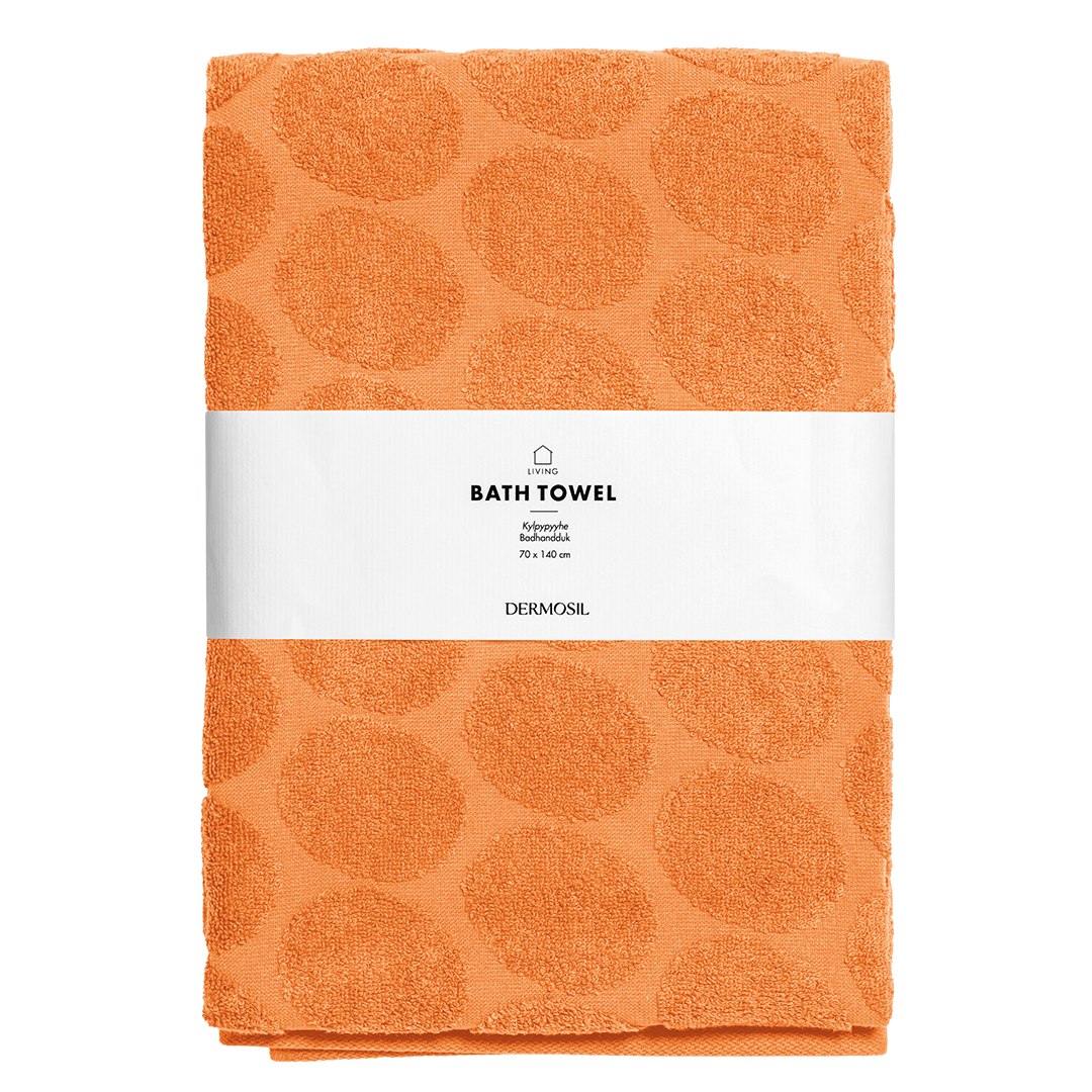 Kaunis kylpypyyhe piristää kotisi kylpytiloja. Pyyhkeen sävy on pirteän oranssi. Juuri sopivan kokoinen kylpypyyhe on 100-prosenttista puuvillaa ja tuntuu iholla miellyttävän pehmeältä.