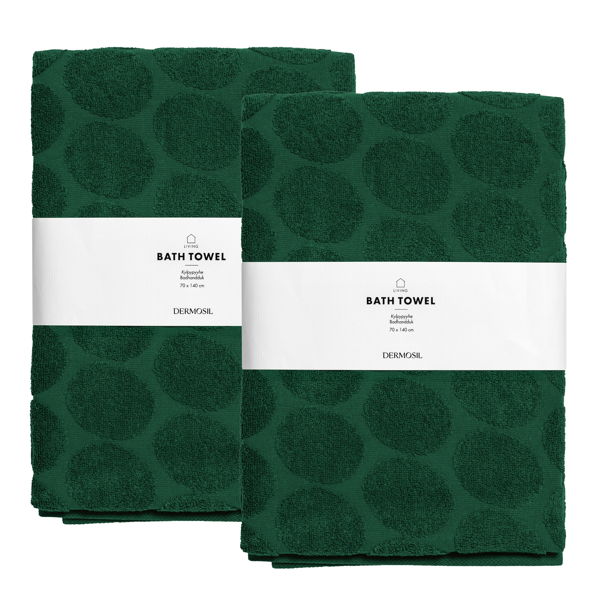 Kauniit, tummanvihreät kylpypyyhkeet piristävät kotisi kylpytiloja. Juuri sopivan kokoinen kylpypyyhe on 100-prosenttista puuvillaa ja tuntuu iholla miellyttävän pehmeältä.