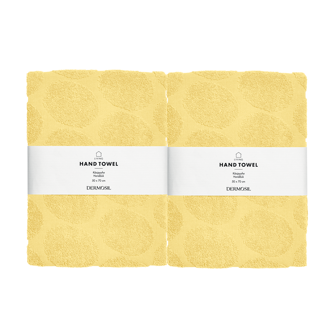 Kauniit, keltaiset käsipyyhkeet ovat 100-prosenttista puuvillaa ja tuntuvat iholla miellyttävän pehmeiltä. Laadukkaat käsipyyhkeet tuovat kauniin ilmeen kodin kylpytiloihin ja kuivaavat kädet tehokkaasti.