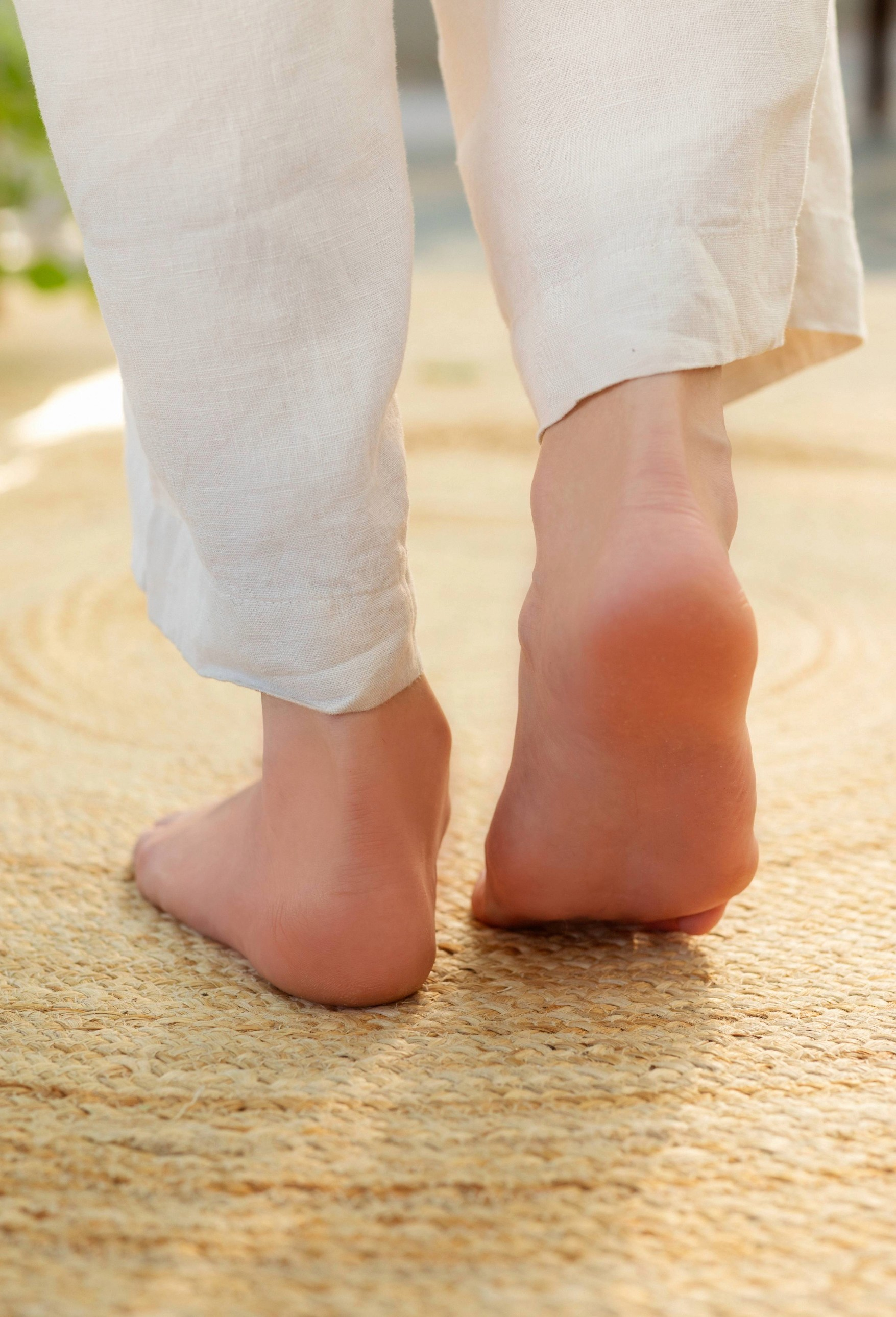 Aloita jalkojen hoitaminen jalkakylvystä, joka pehmentää jalkojen ihon. Raspaa jalkojen ihoa sen jälkeen jalkaraspin karkealla puolella, ja viimeistele raspaus hienolla puolella. Raspauksen jälkeen voit vielä kuoria jalat jalkakuorinnalla ja levittää lopuksi jalkoihin yövoiteen.
