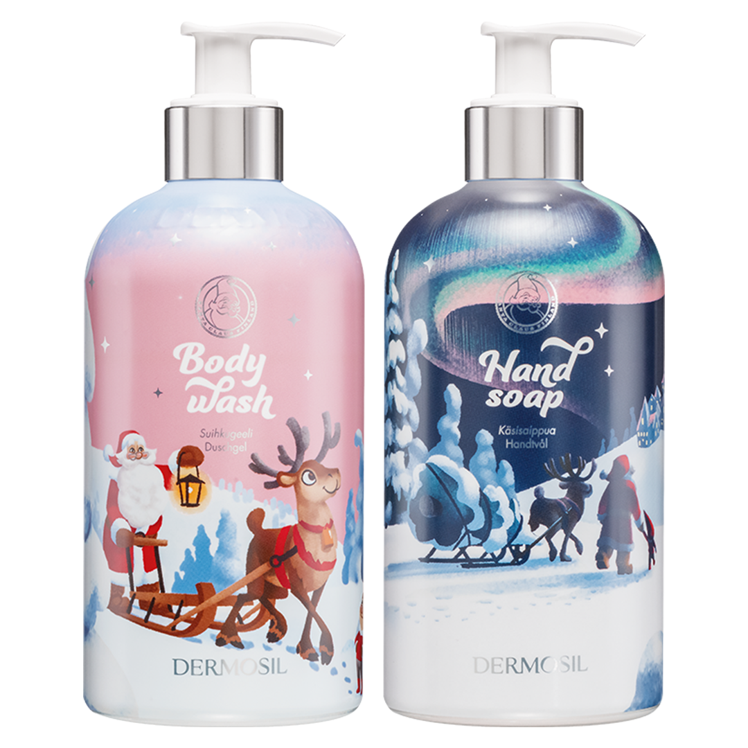 Joulupukin saippuasetti sisältää joulupukin viralliset joulusaippuat edulliseen settihintaan! Joulupukin Käsisaippua ja Joulupukin suihkugeeli on testattu Korvatunturin vaativissa olosuhteissa ja todettu erityisen kilteiksi iholle!
