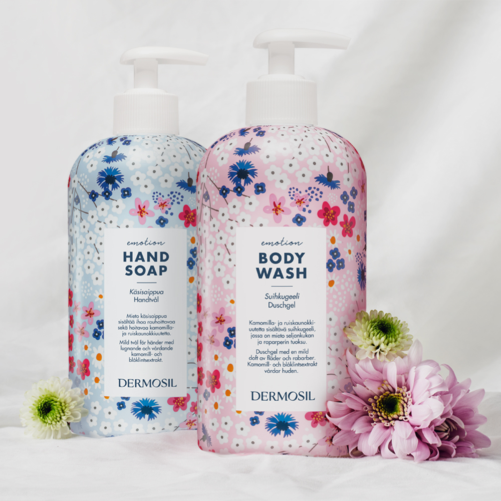 Dermosil Emotion Käsisaippua on pullollaan kesän villikukkien vastustamatonta tuoksua ja parhaita raaka-aineita. Riittoisa käsisaippua pesee kädet puhtaiksi hellävaraisen tehokkaasti ja säilyttää käsien ihon pehmeänä pesukerrasta toiseen.