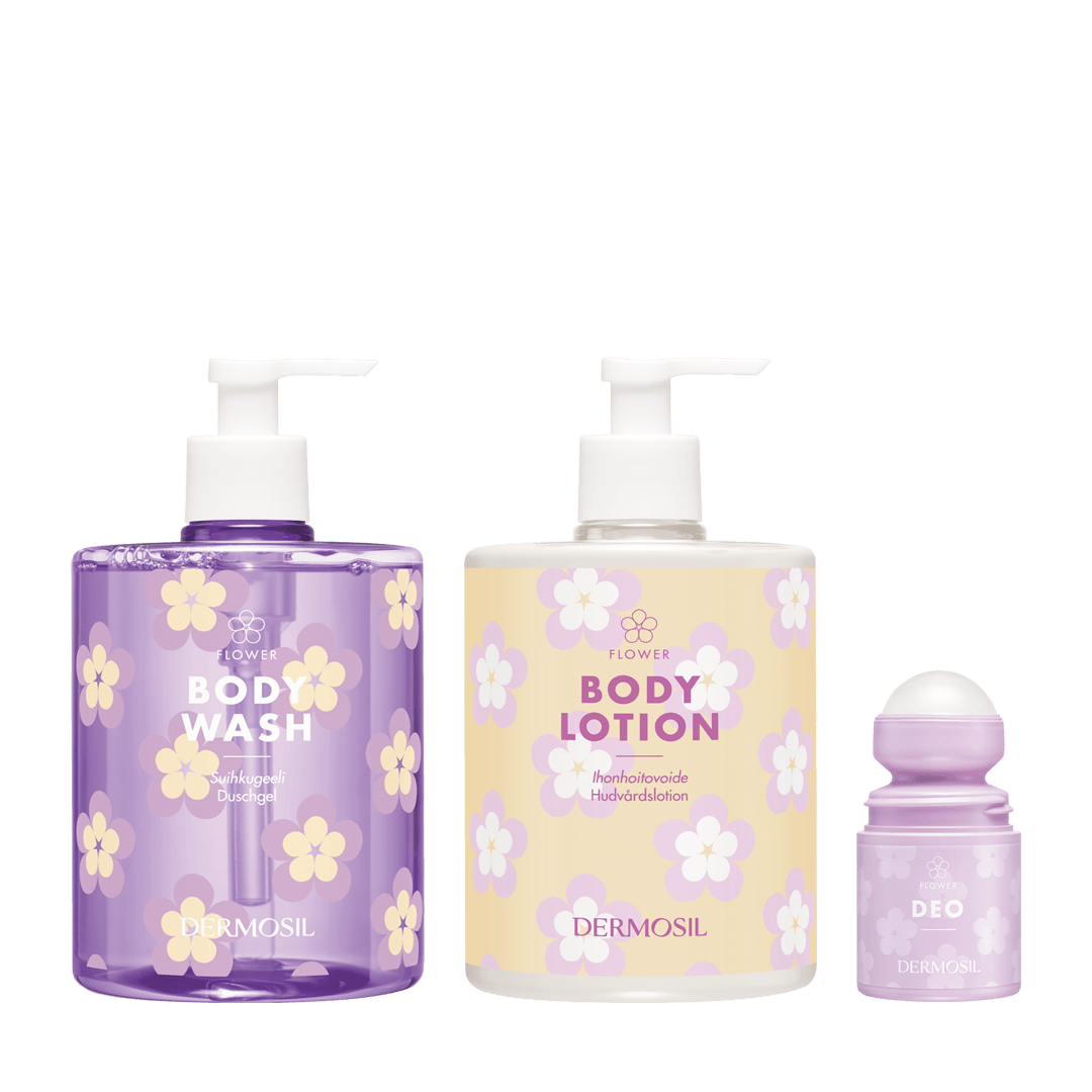 Flower Suihkugeeli sisältää ihoa rauhoittavaa rohtosalkoruusu-uutetta sekä kosteuttavaa glyseriiniä, betaiinia ja koivunmahlaa, jotka auttavat pitämään ihon pehmeänä ja hyvinvoivana jokaisella pesukerralla.