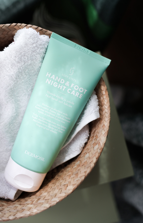 Kosteusvoide kuivalle iholle hoitaa käsien ja jalkojen ihoa yön aikana