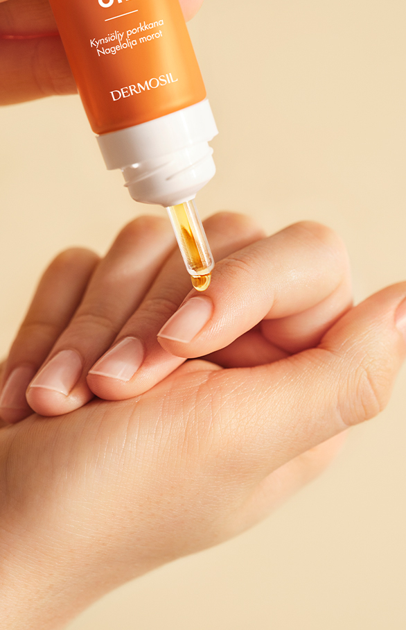 Käytännöllisen annostelijan avulla on helppo levittää öljy kynsille ja kynsinauhoille. Levitä 1–2 tippaa kynnelle ja hiero kynsinauhoille ja koko kynnen alueelle. Paras kynsinauhaöljy hoitaa sekä kynttä että kynsinauhoja.