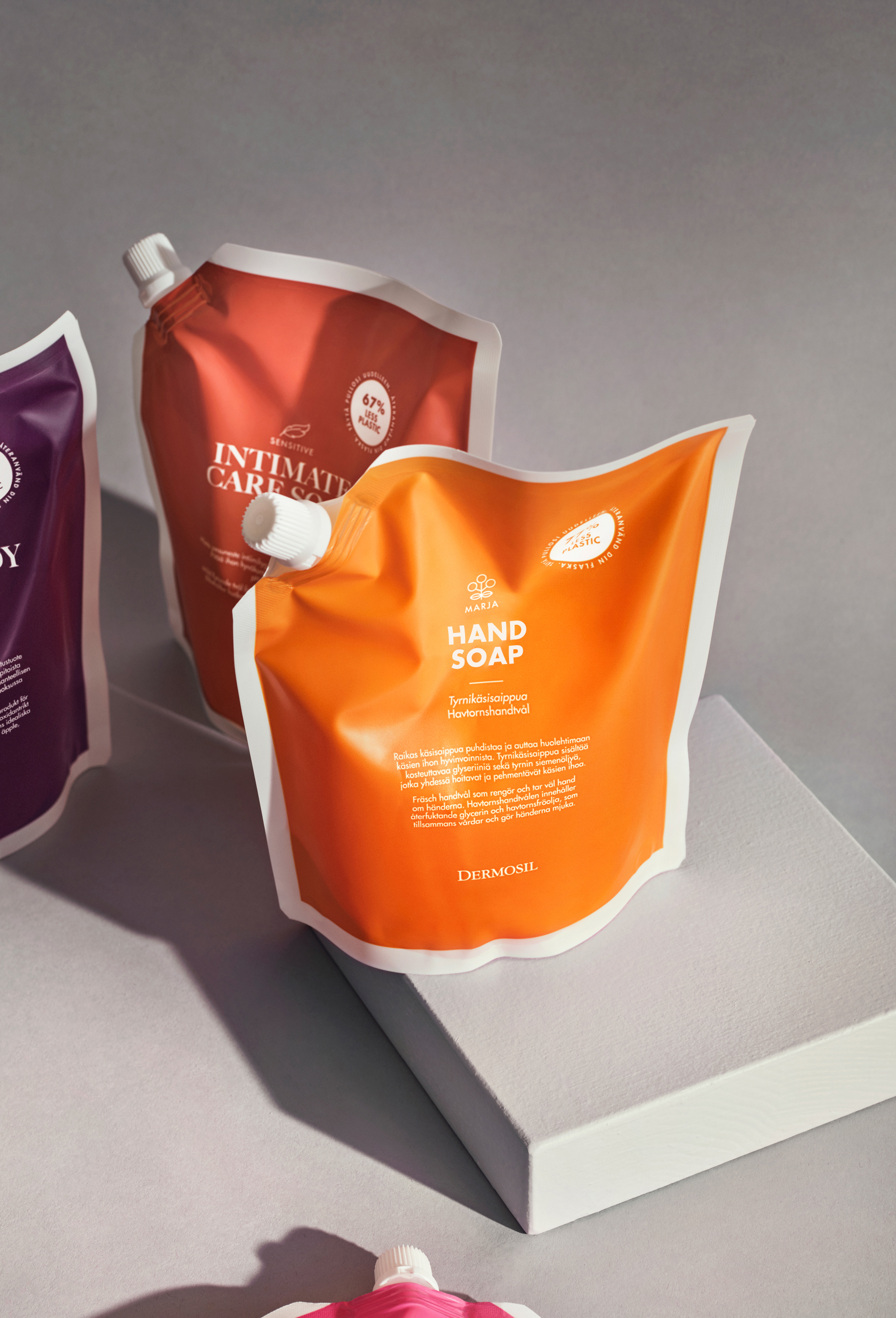 Dermosil täyttöpakkaukset ovat tilavuudeltaan 500 ml, niissä on aukikierrettävä korkki ja pullomainen suu, jonka kautta sisältö on helppo kaataa tyhjään pulloon.