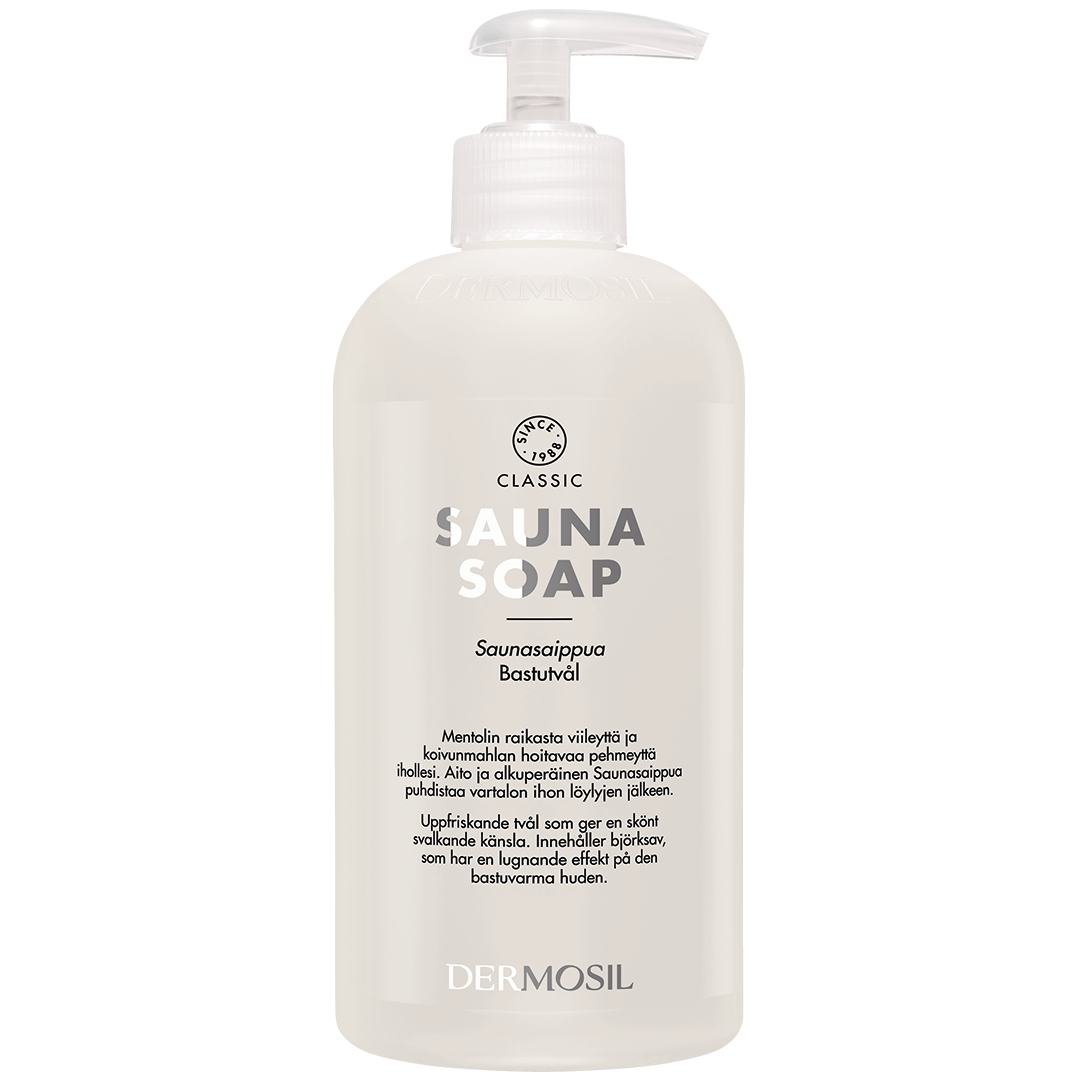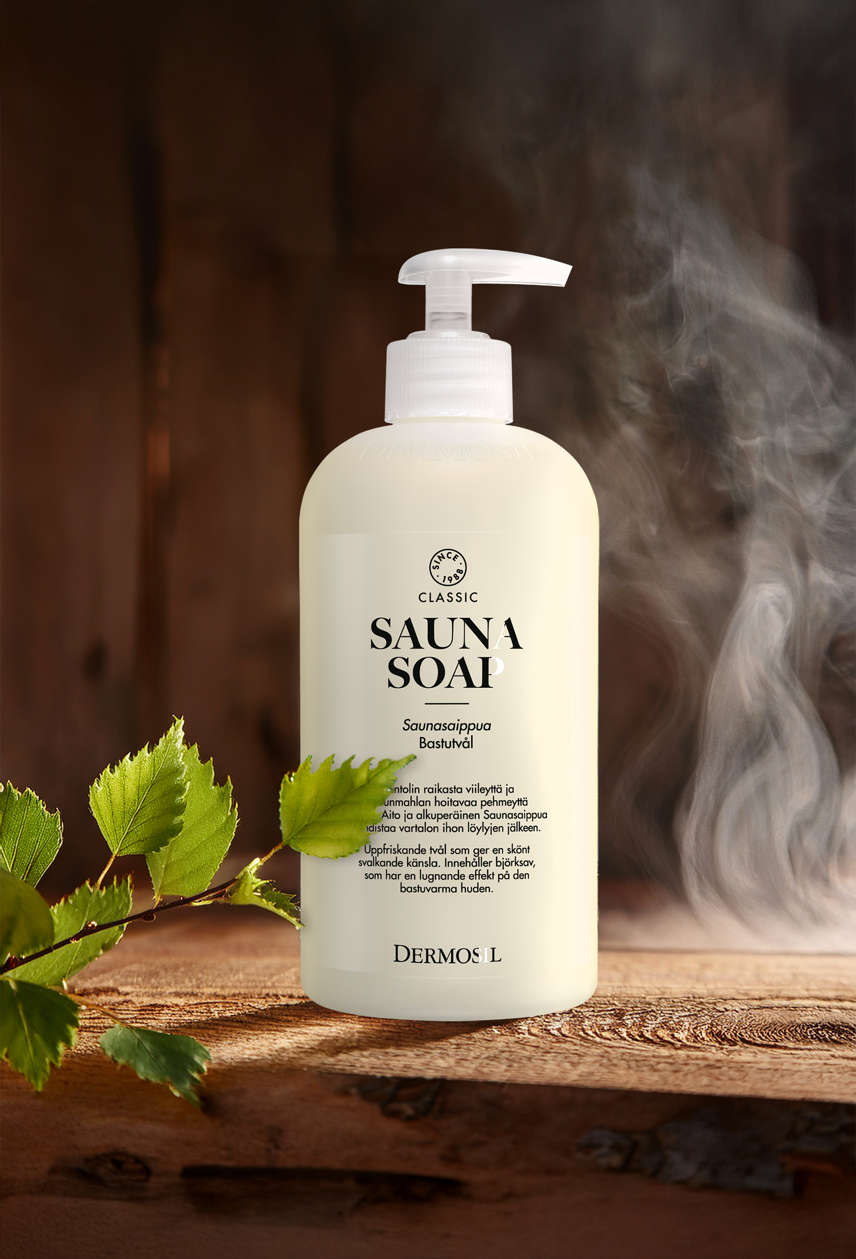 Saunasaippua on hoitava, nestemäinen saippua, joka on suunniteltu käytettäväksi saunomisen jälkeen. Mentoli antaa Saunasaippualle viilentävän vaikutuksen, ja koivunmahla rauhoittaa ihoa. Saunasaippuassa on raikas tuoksu, joka tuo raikkaan tunteen löylyjen jälkeen.
