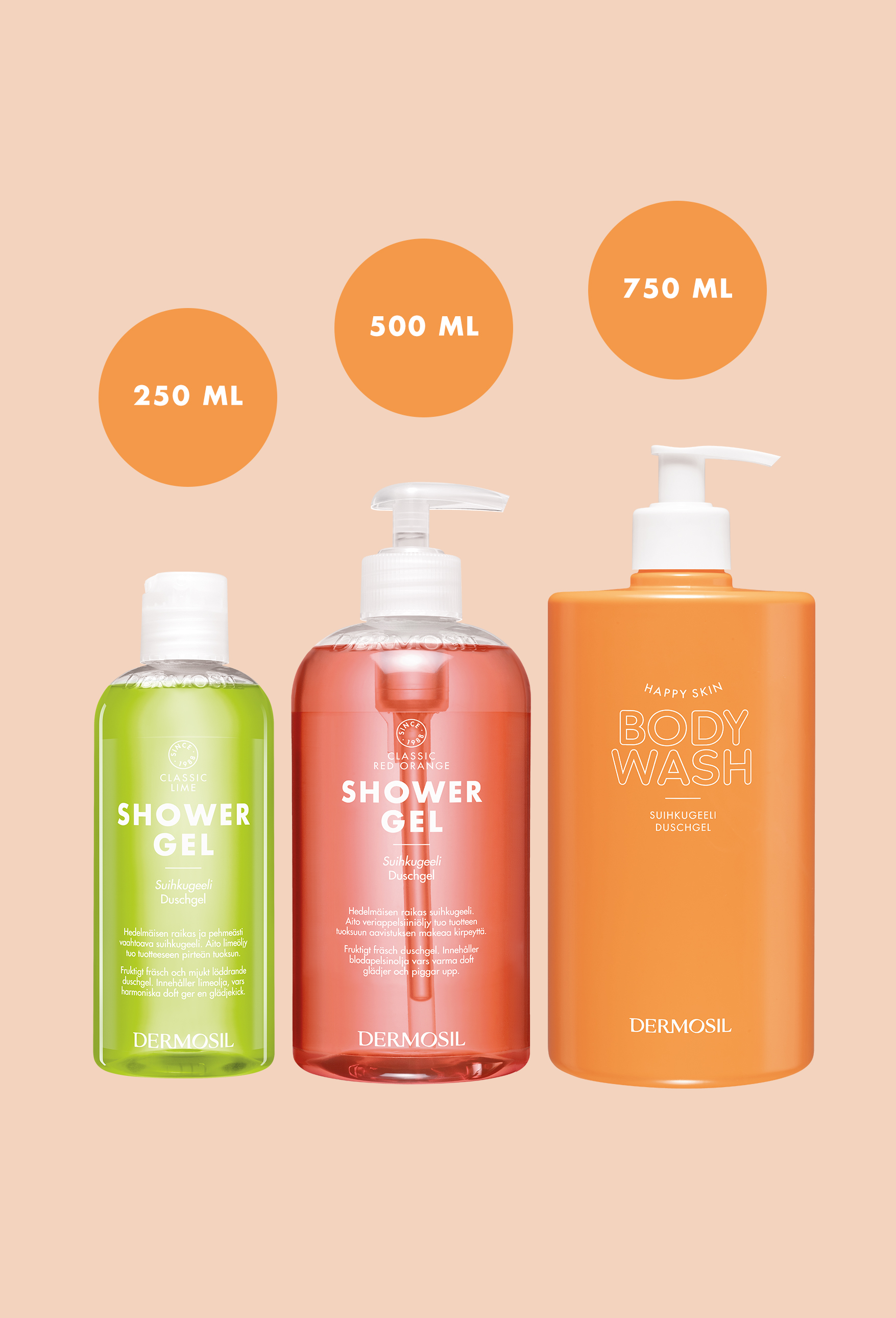 750 ml pumppupullosta riittää runsaasti iloa vaikka koko perheen pesuhetkiin pitkäksi aikaa.